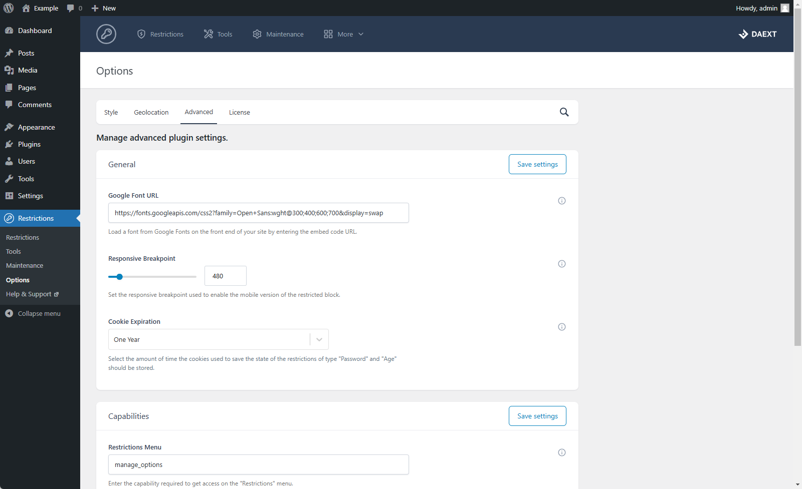 This restriction uses the capabilities of the user to determine whether to display or not a specific block.