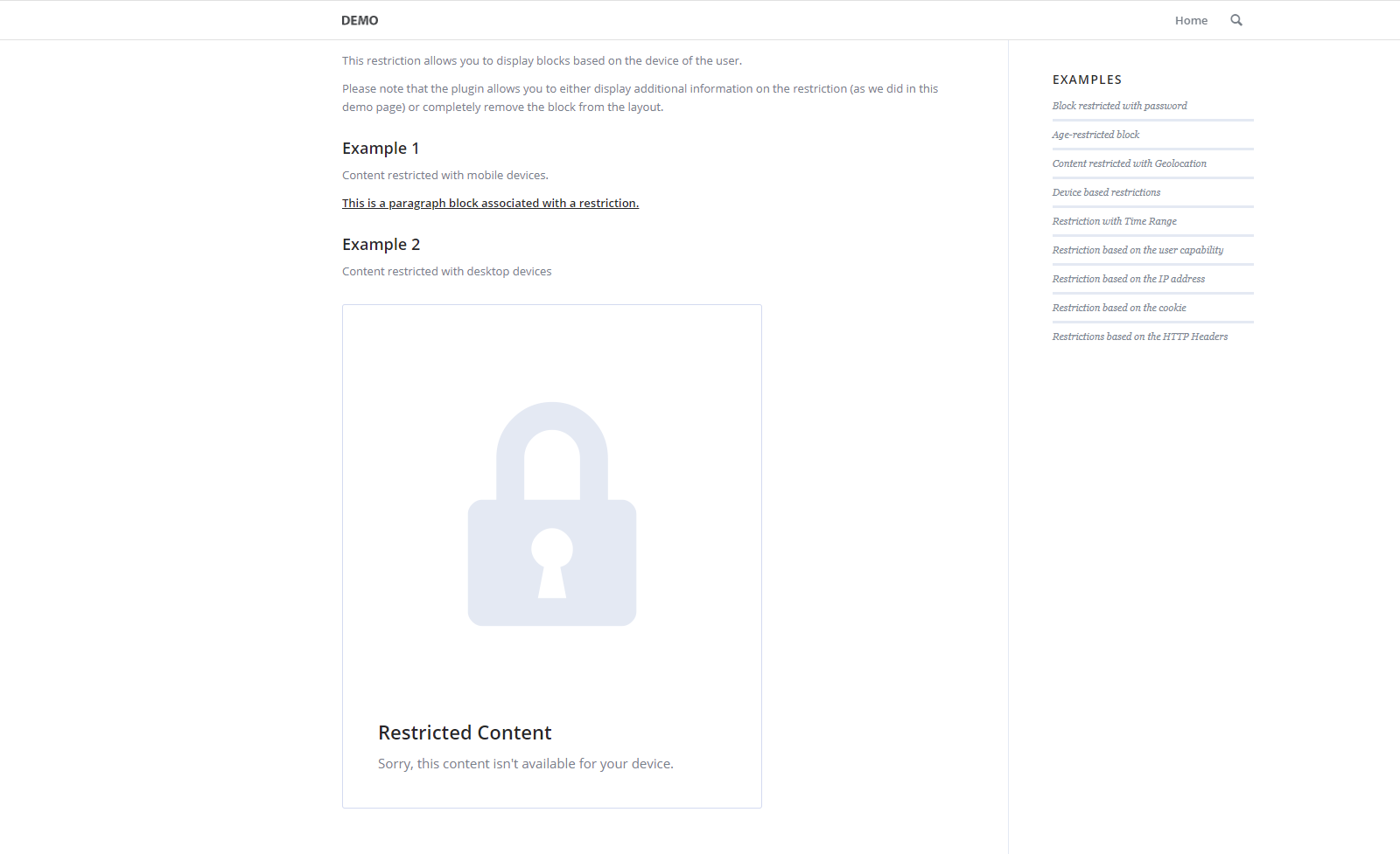 This restriction allows you to display blocks based on the device of the user.