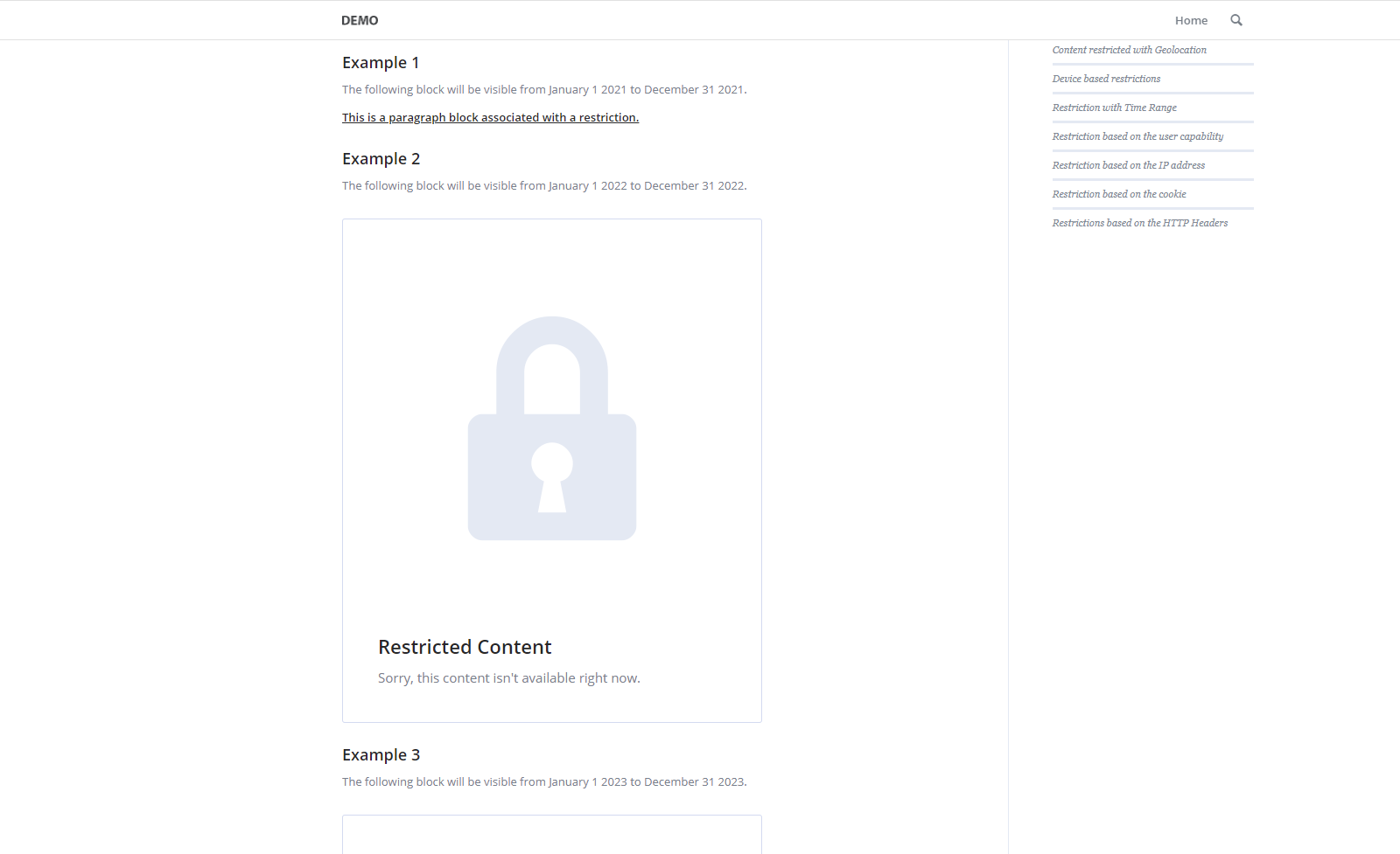 You can, for example, restrict content based on the user role, hide content for the users that live in specific geographic locations, conditionally display content based on the user device, make parts of the post unavailable to search engines, and more.