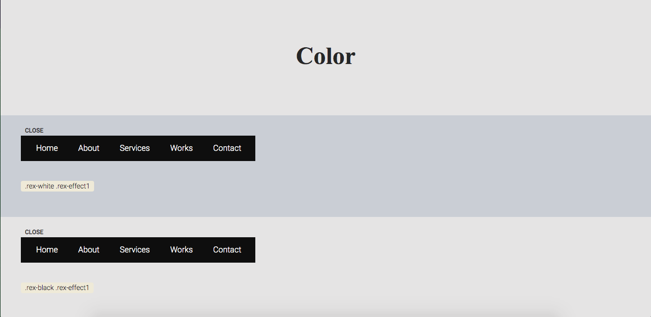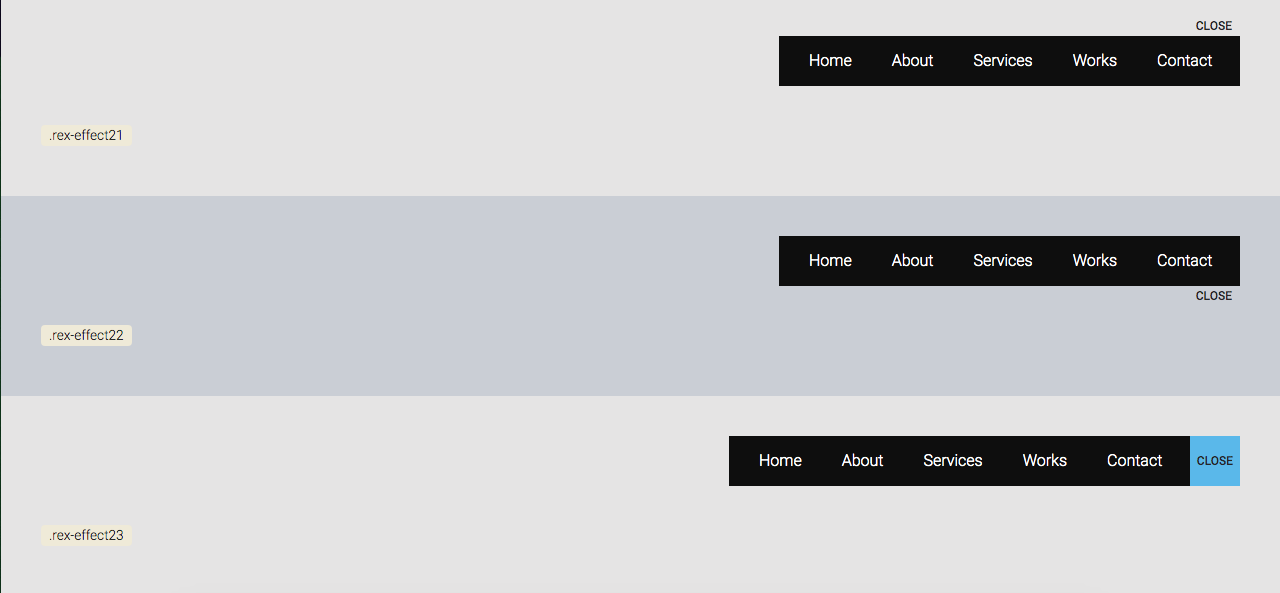 Rex Mini Menu is a small, one-level menu plugin intended to be used for websites with few menu items and where space is limited. There are 32 different effects, normal and large sizes and default, black and white colors.
