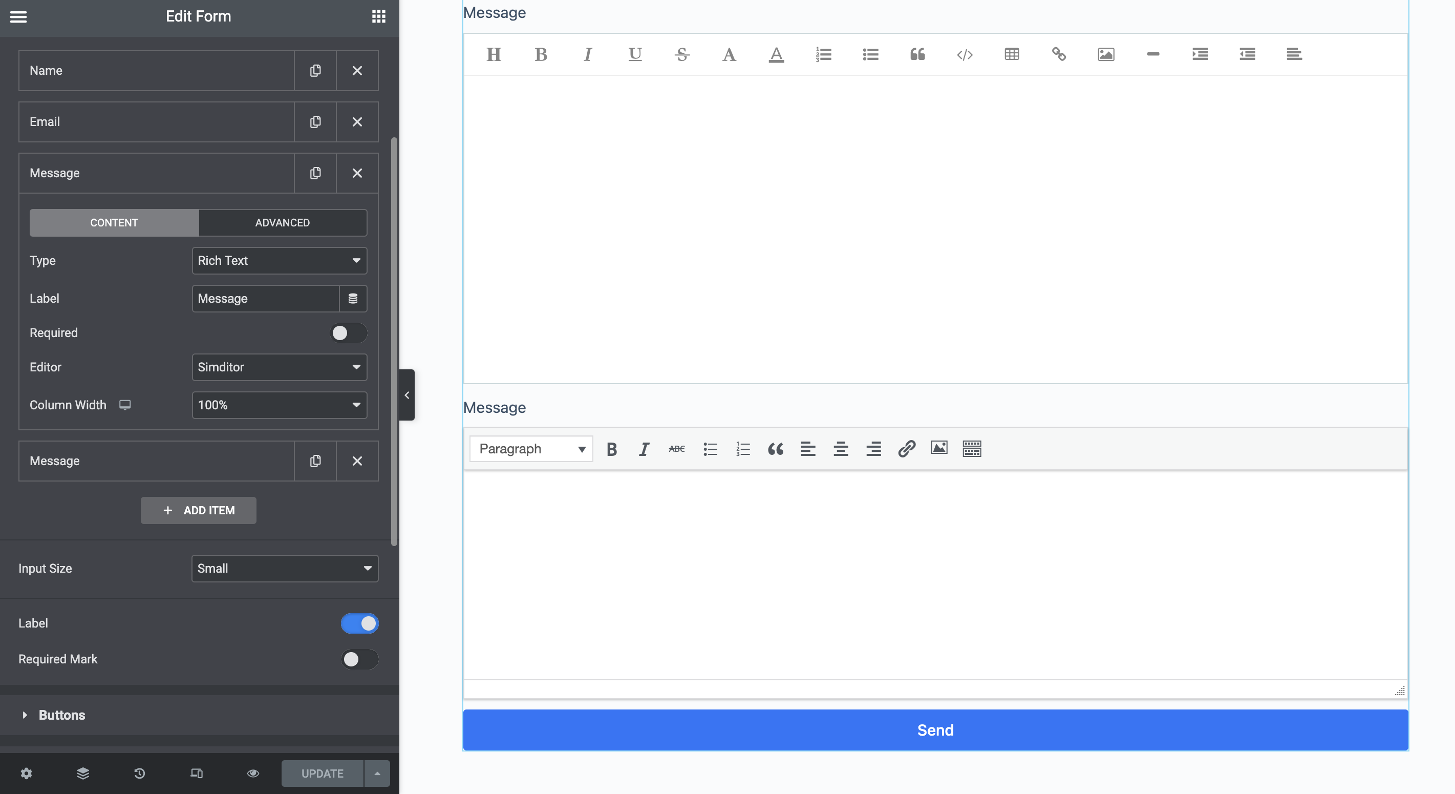 Rich Text Field for Elementor Form – Adds a Rich Text ( WYSIWYG ) field type to the Elementor Form widget.