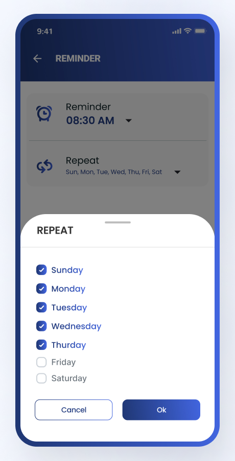 - Setting – You can customize your running daily target, measurement unit, language and etc.