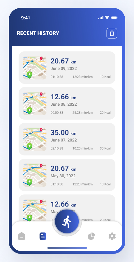 Reach your running goals with the Run Tracker App. You can track running statistics, record routes with GPS in real-time, and allows you to reach your goals with detailed analysis and graphs. Track your activities to meet your fitness goals & running achievements! The Run Tracker app tracks all key statistics, total distance, time, average speed, calories burned, etc.