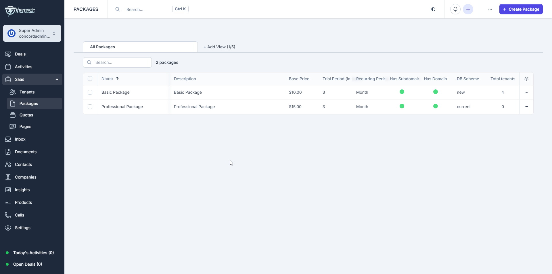 Transform your Concord CRM into a Super Admin installation with dedicated SaaS management interface. Create, manage, and monitor all tenant instances through an intuitive dashboard that tracks key performance metrics, subscription status, and usage statistics. This multi-tenant CRM management system requires minimal technical knowledge while providing enterprise-level control over your SaaS platform. -