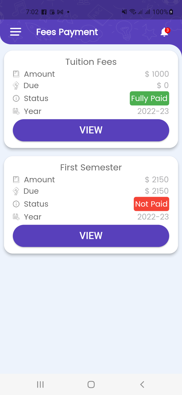 - Fixed Fee Payment download issue. - Fixed Fee Payment Not Paid Status design update. - Fixed Homework upload issue. -