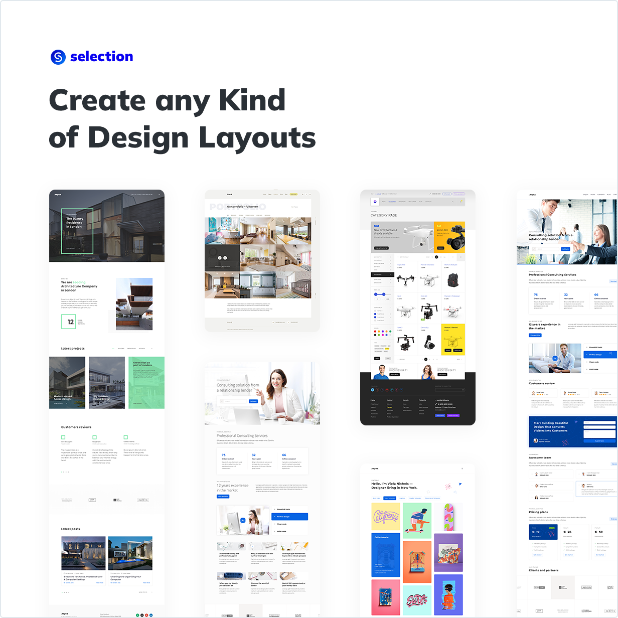 Glad to present you the Selection Elementor widgets pack – this is only the initial version of a huge product that we are going to provide to this world. The Elementor bundle is already included widgets, each of which was carefully designed as a separate item and loved by our users. Is it worth talking about the benefits of such a set of Elementor widgets? Obviously, this is a godsend when developing your site as it contains many useful, frequently used elements and relieves the need to choose between one or another. At the same time, this will help to achieve the desired effect regardless of your skills and save your time and costs.