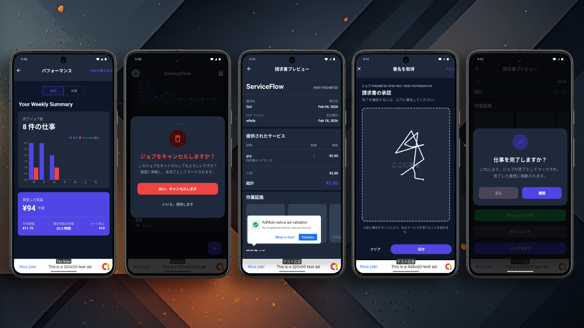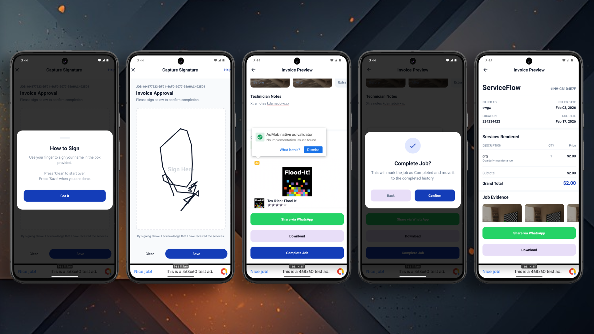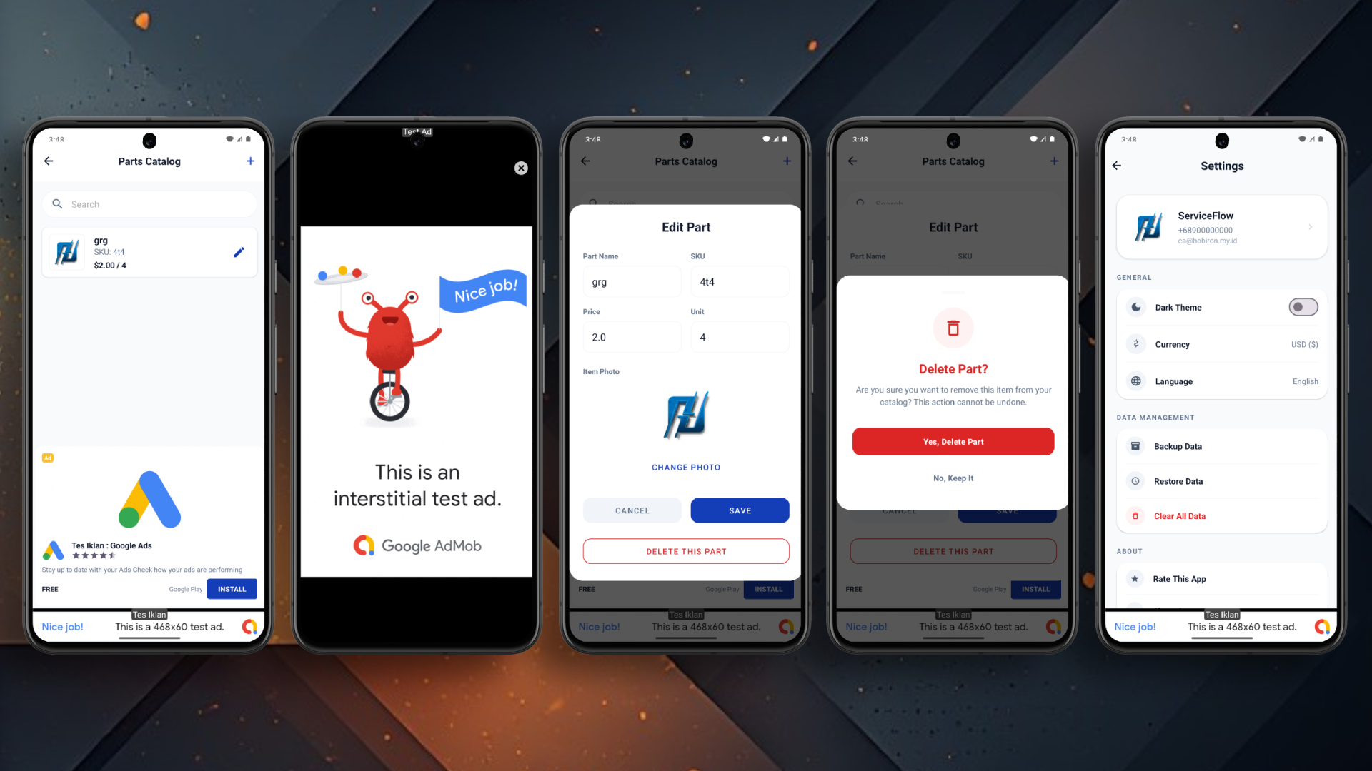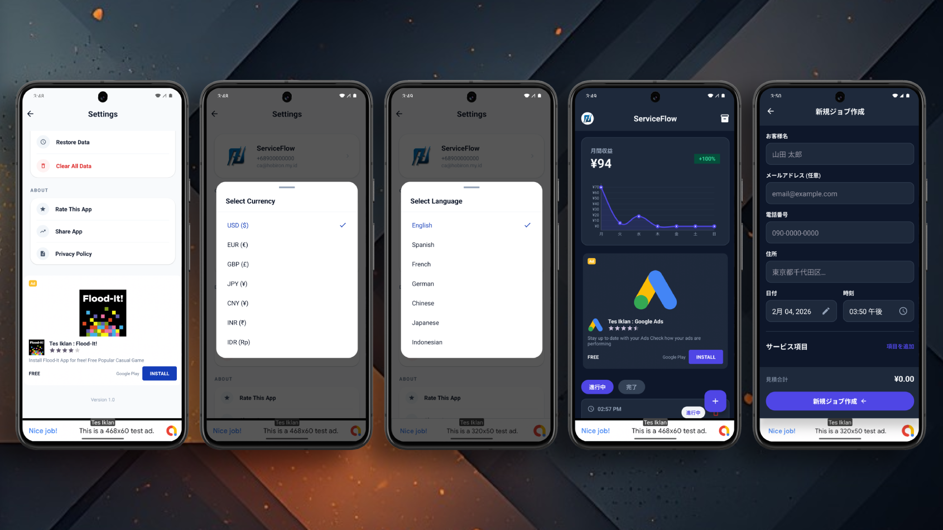 - Interstitial Ads: Smart triggers after completing or canceling jobs.