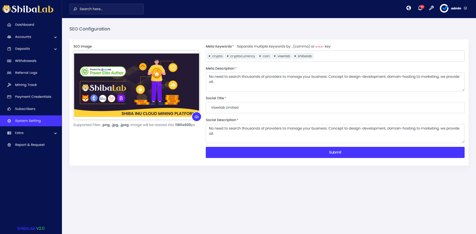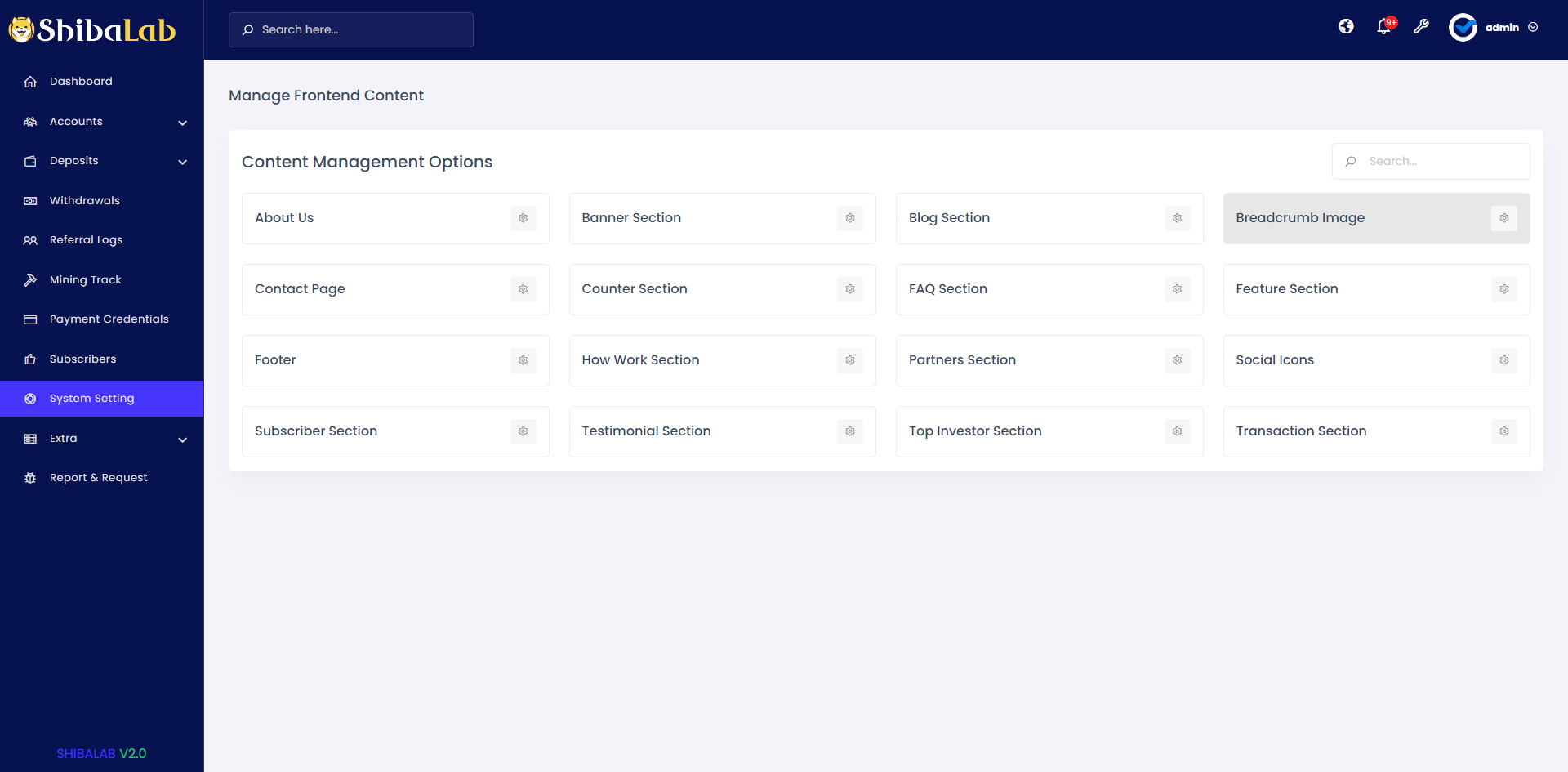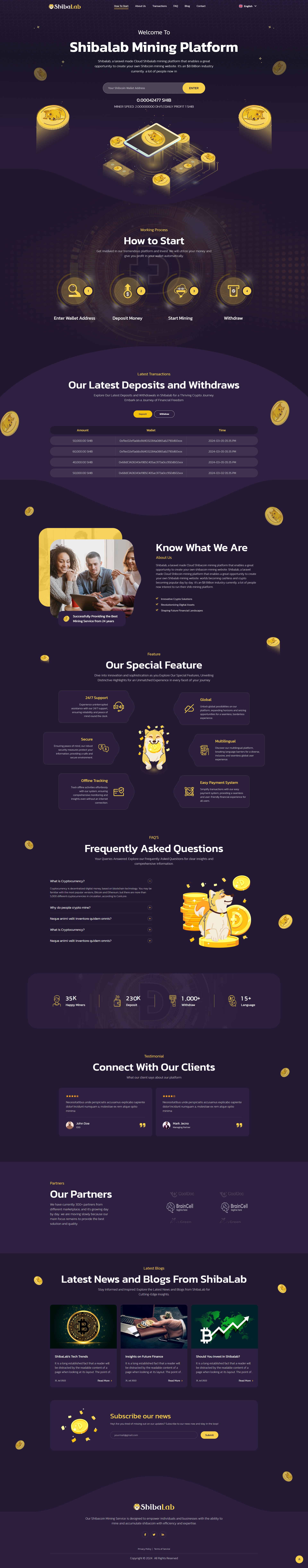 ShibaLab, a laravel made Cloud Shiba Coin mining platform that enables a great opportunity to create your own ShibaCoin mining website. worlds becoming cashless and crypto becoming popular day by day. it’s a $20.42 Billion industry currently. a lot of people are now interested in running their Shiba mining platform, as they believe Shiba become the next dogecoin and create a revolution in the crypto market. 1 SHIB equals 0.000035 USD. The current value of 1 Shiba Inu is +21.68% against the exchange rate of USD 3rd March 2024. The current Shiba Inu market cap is $20.42B United States Dollars. we have hundreds of requests to develop such items and we collect ideas from some of our clients and their needs, we have the intention to update it, but it depends on your choice, depends on the sale, and the update request.