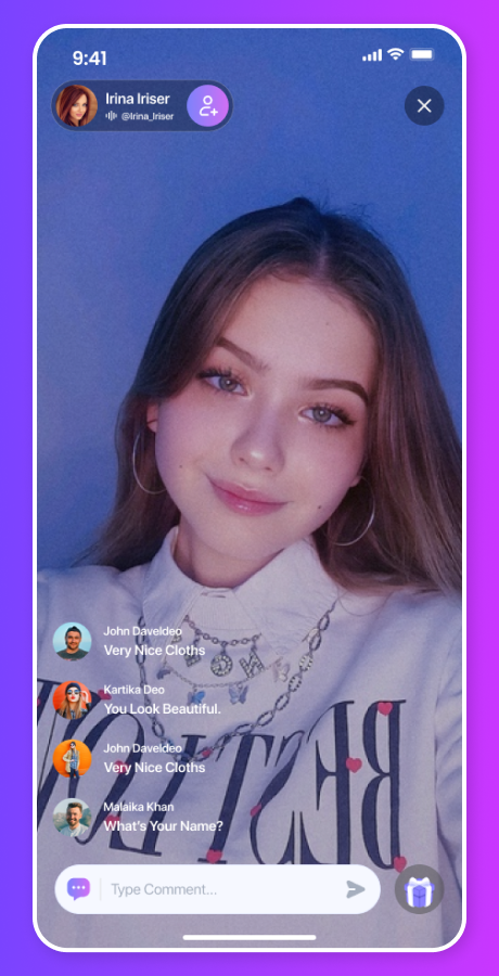 - Live Streaming: Solo live, PK battle, real-time gifting, and reactions