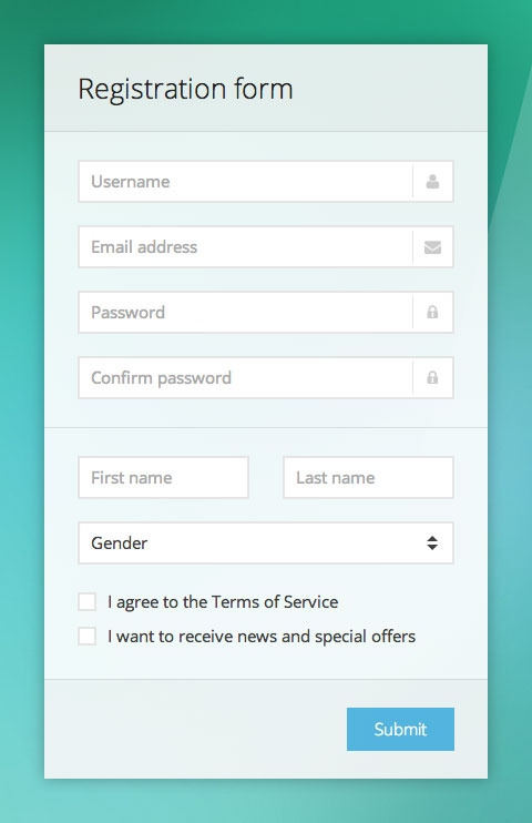 Sky Forms is a set of beautiful form elements. It has large amount of customized items, different color schemes, responsive grid system and allows you to create forms of any complexity and for any needs: login, registration, contacts, review, order, comment, checkout, etc.