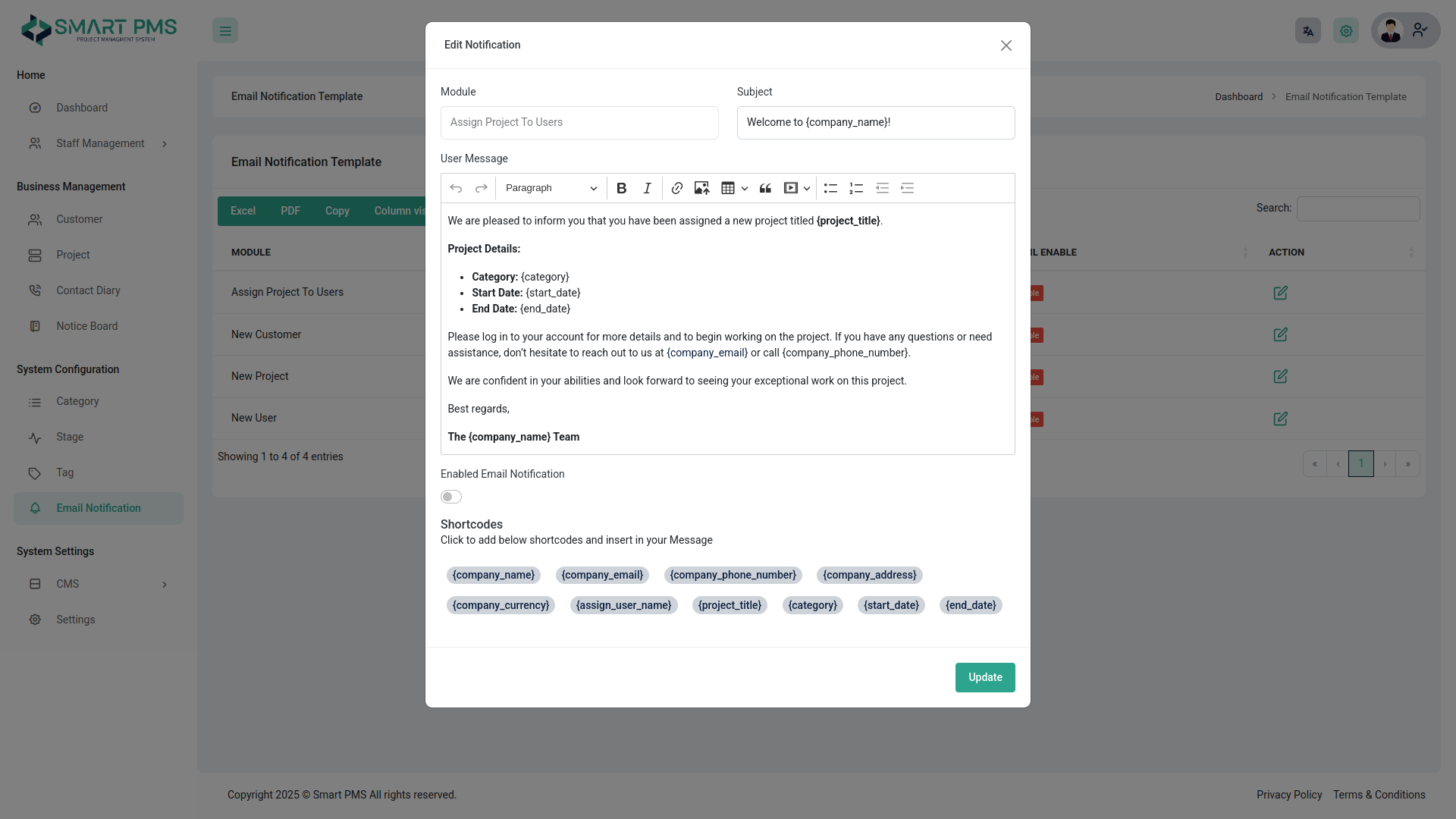 Version 1.8 (15 Nov 2025) * Bug & Bug Stage Module * SMS Notification Template * Twilio Integration for Mail Sending * Customer Login Dashboard * Report Section : Project , Task & Payment * Paystack Payment Gateway Integration