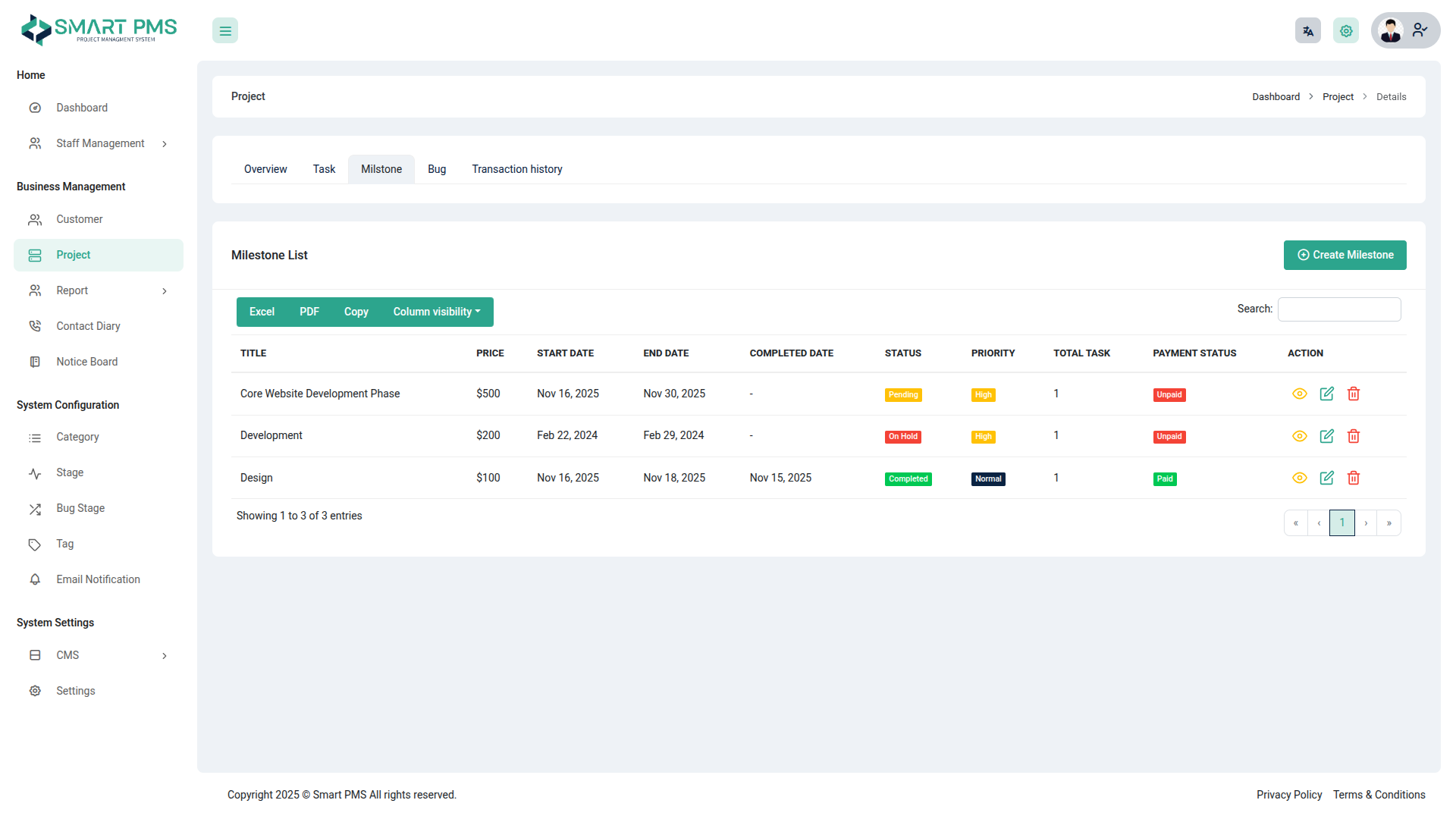 Smart PMS is a Well Designed Project & Task Management System that gives your client the ability to manage and create project & task.With a Saas version create subscriptions using super admin login.