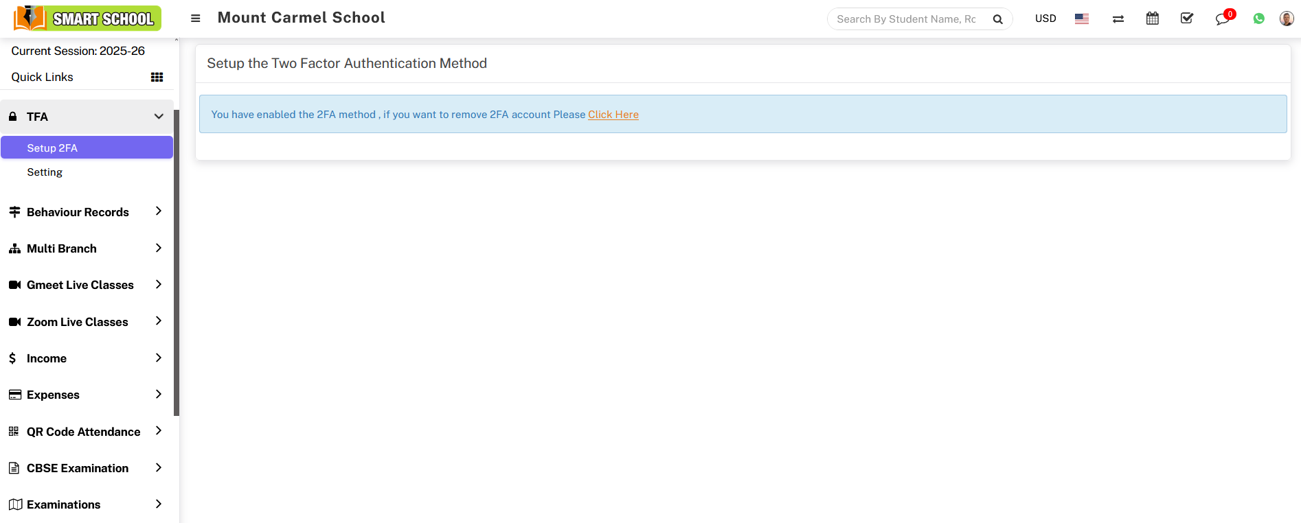 Smart School with Two Factor Authentication demo is available at https://demo.smart-school.in/tfa/gauthenticate/login
