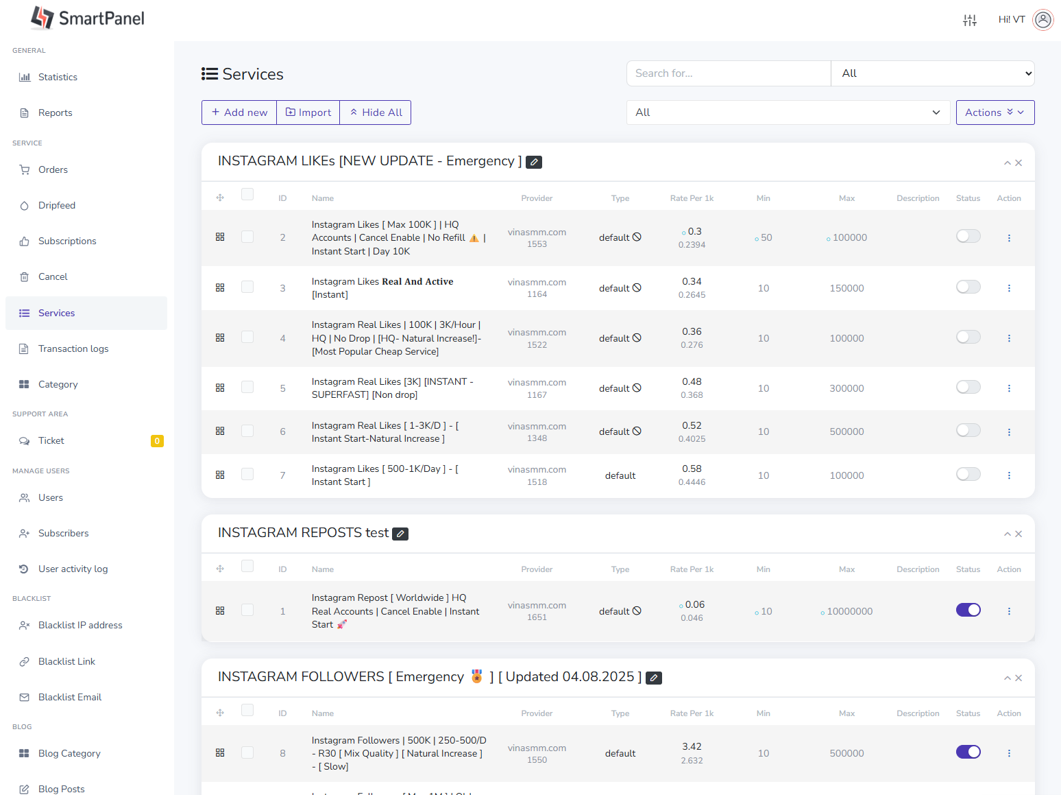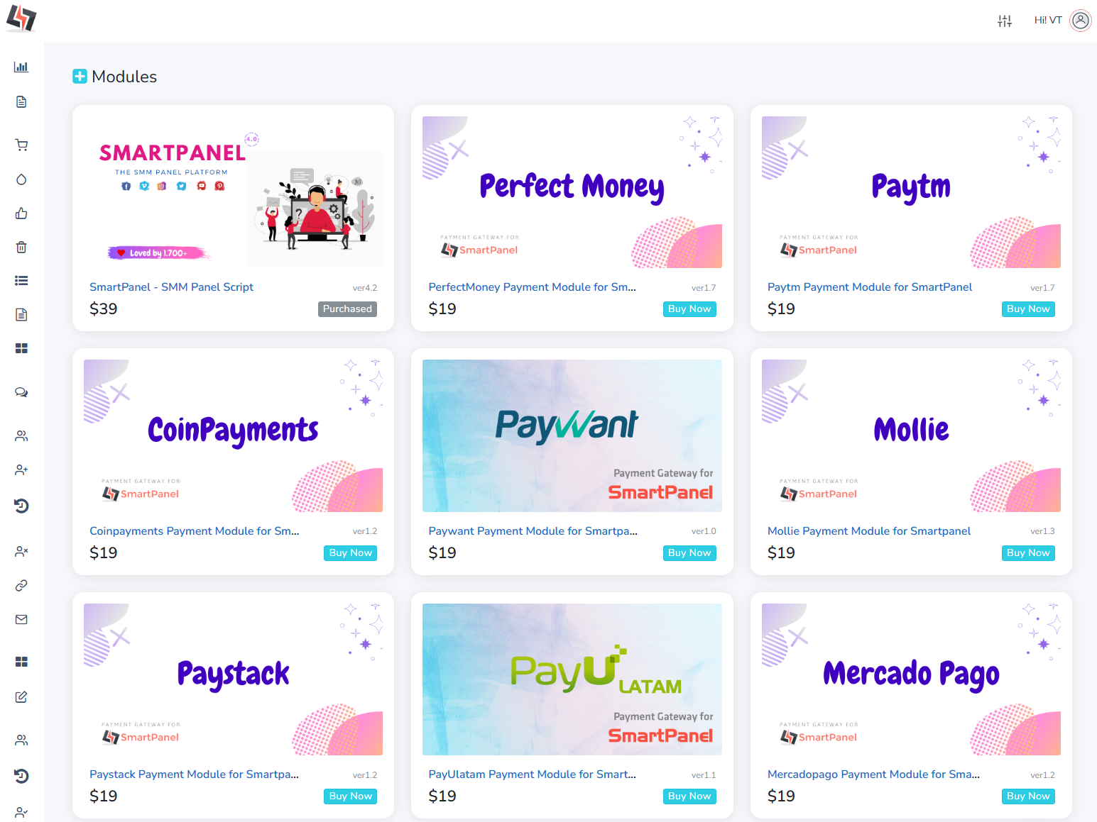 SmartPanel is the most advanced and feature-rich SMM panel script that offers a complete solution for managing social media marketing services. With an easy-to-use interface, you can sell and manage services like Facebook Likes, Instagram Followers, YouTube Views, and many more. Whether you are a social media marketer or reseller, this panel will help you get things done faster and more efficiently.