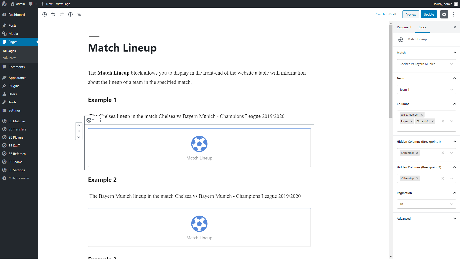 With the 40 menus, 143 configuration options, and 33 Gutenberg blocks included in this plugin, you will be able to manage every aspect of your favorite sport.