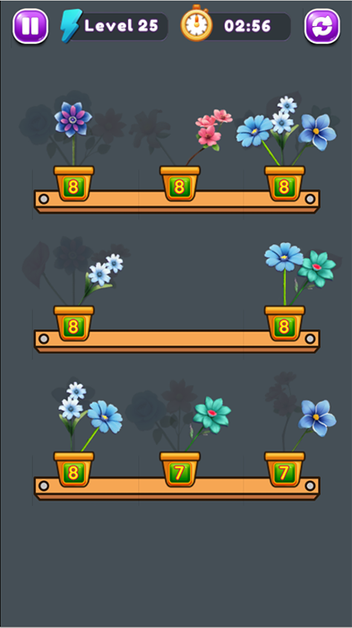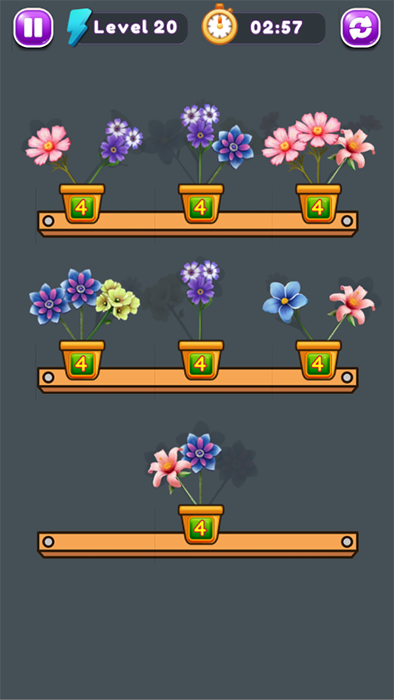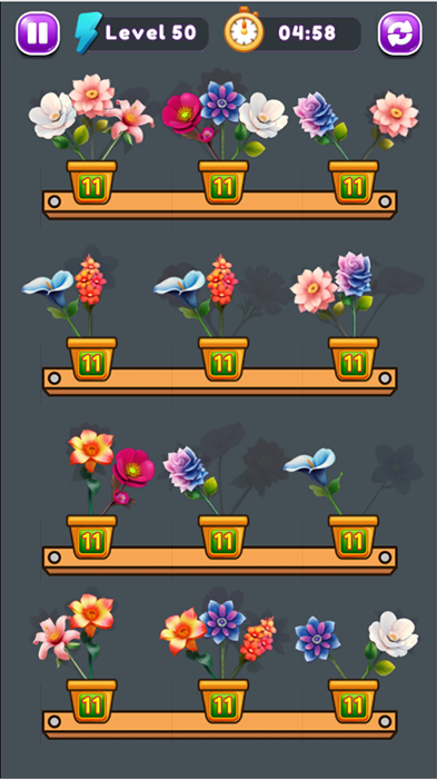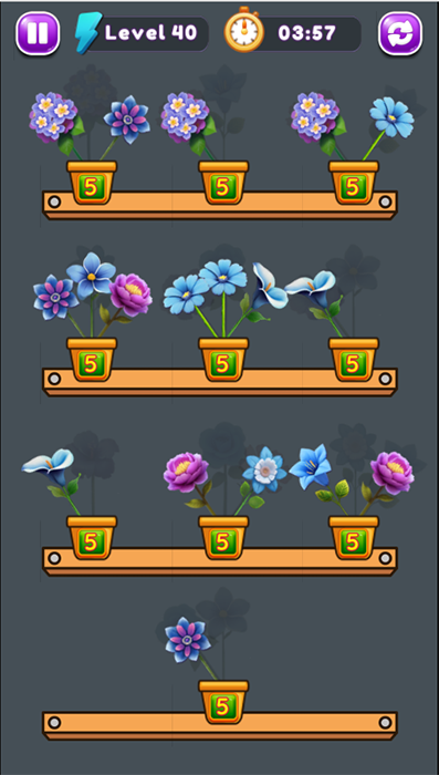 The game can have many different modes, such as time limits or number of moves, creating challenges for players. With bright graphics and soothing sounds, “Sort Flowers” brings a relaxing yet stimulating feeling as you have to think strategically to complete the mission.