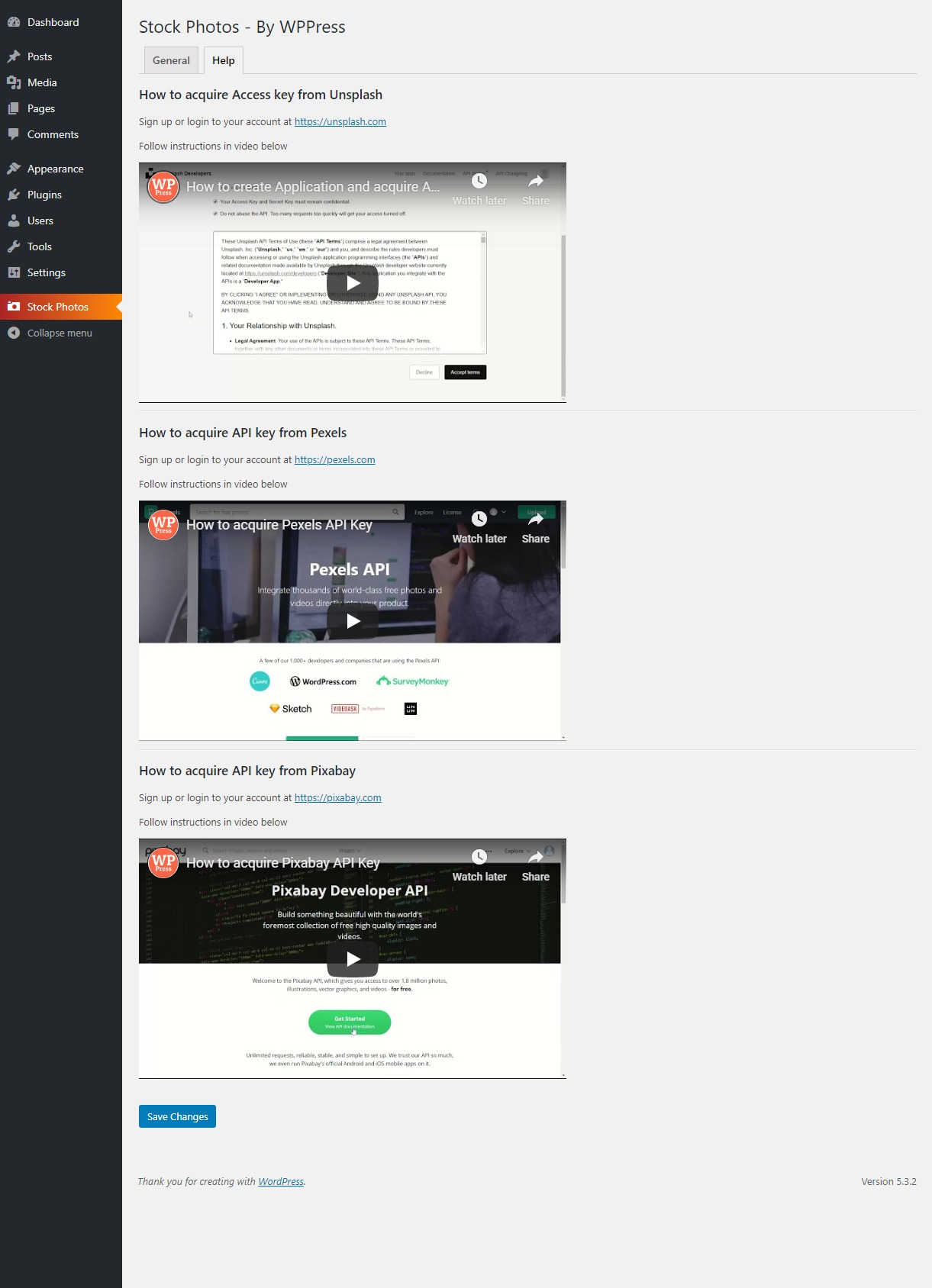 - Where do the stock photos come from? Right now the photos are searched, listed and imported from unsplash.com, pixabay.com and pexels.com right now using their official API. We will add more sources soon. You can enable/disable certain source from plugin settings page.