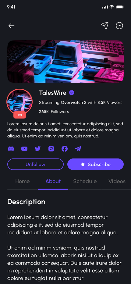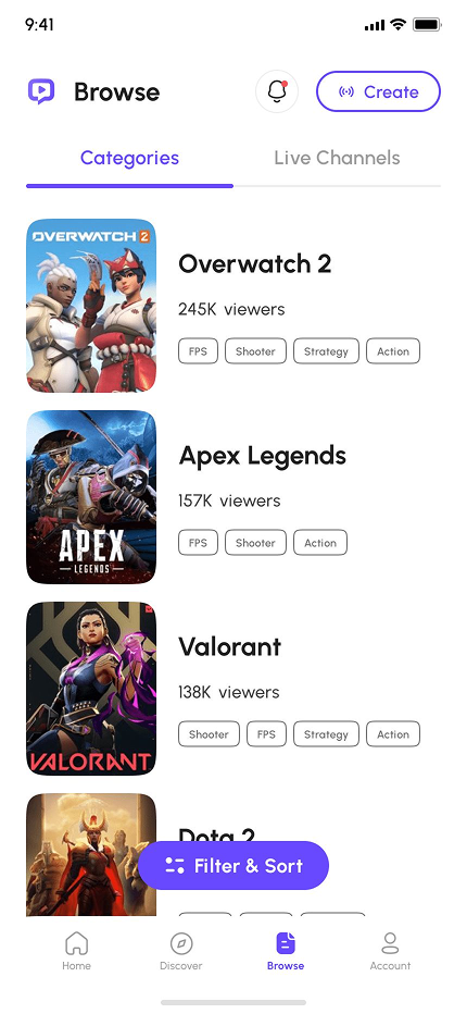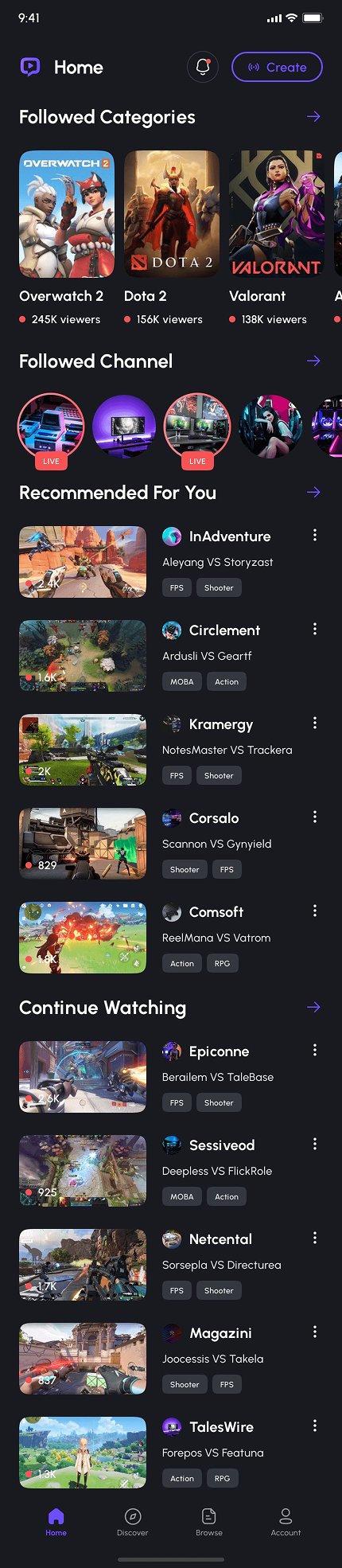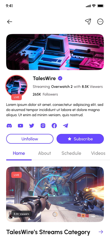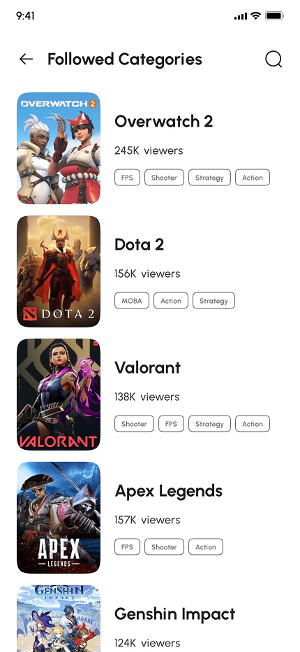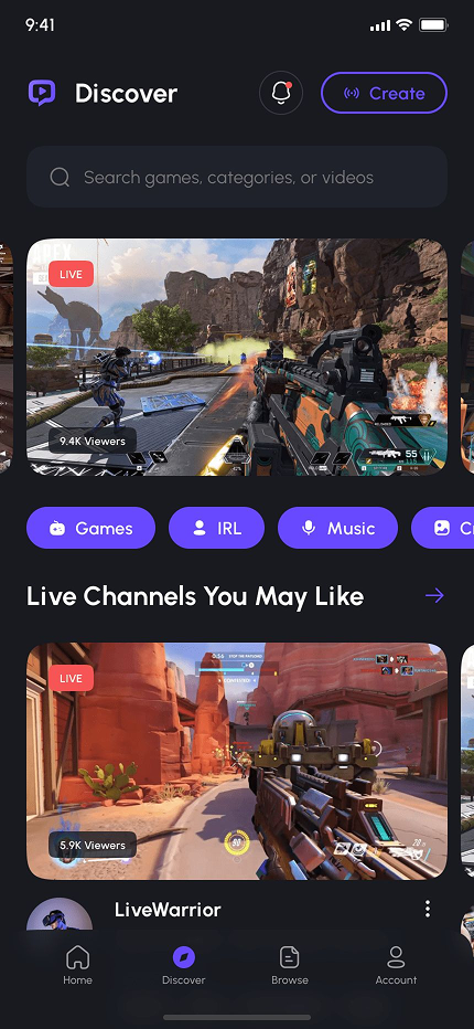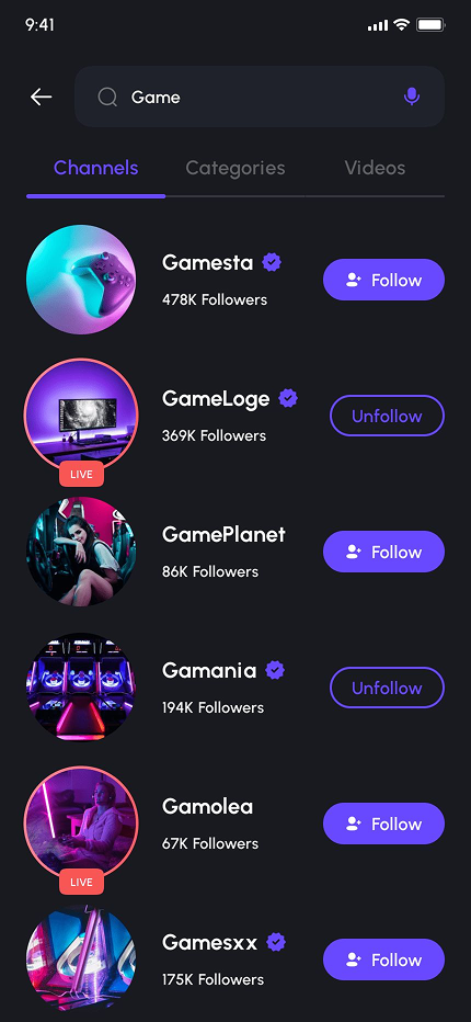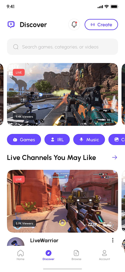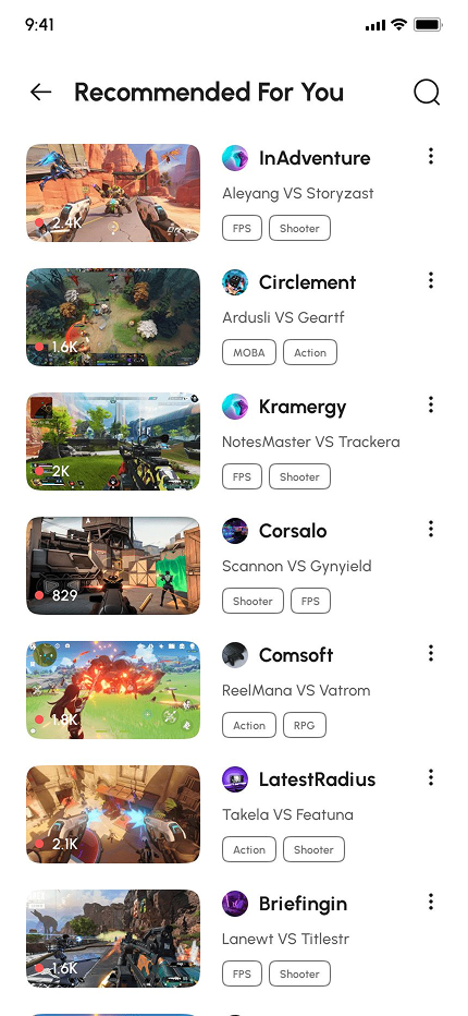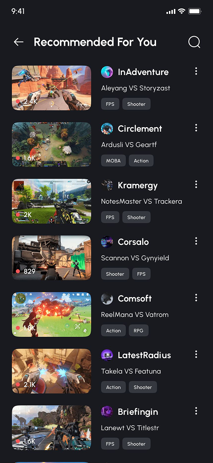 - Video Game Live Streaming App