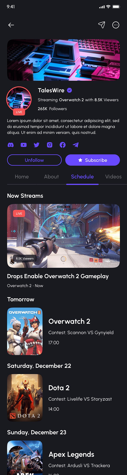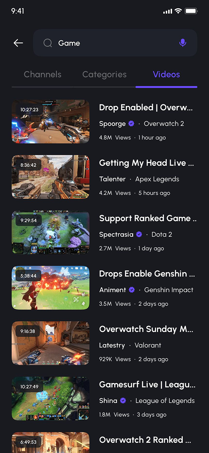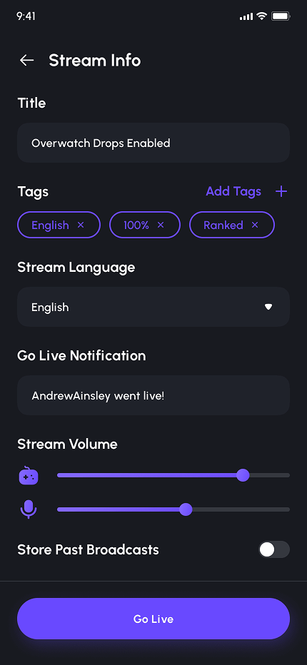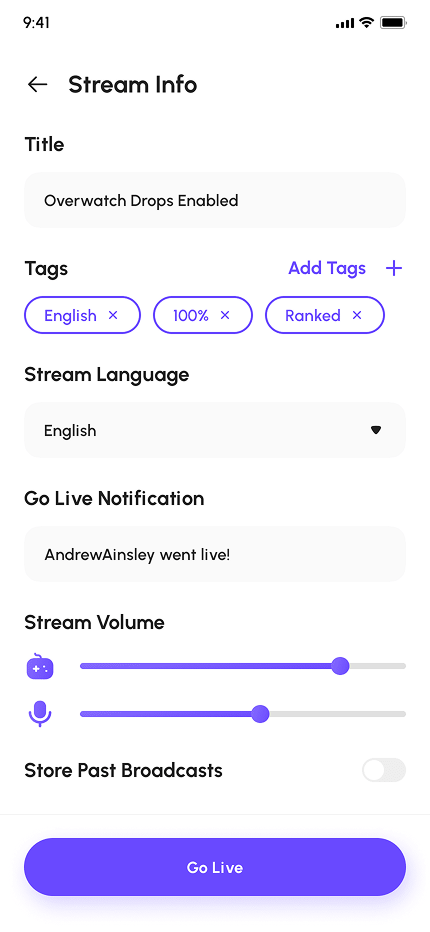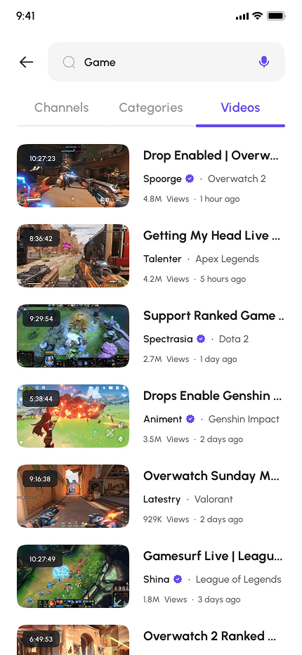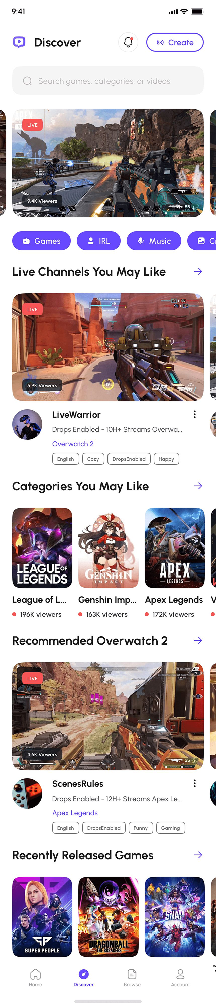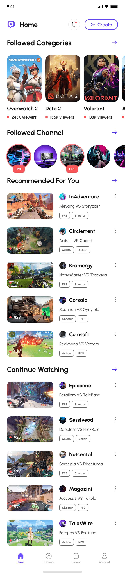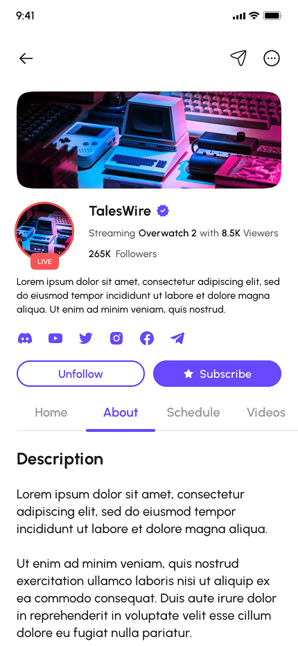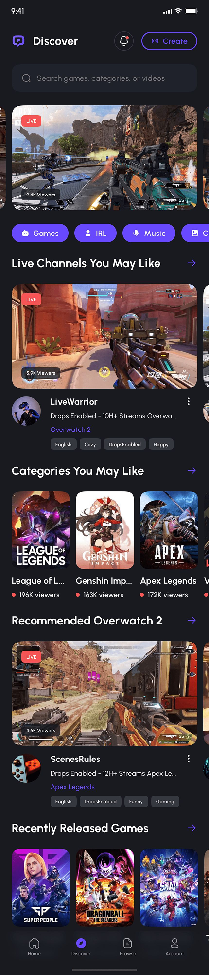 - Video Game Live Streaming App