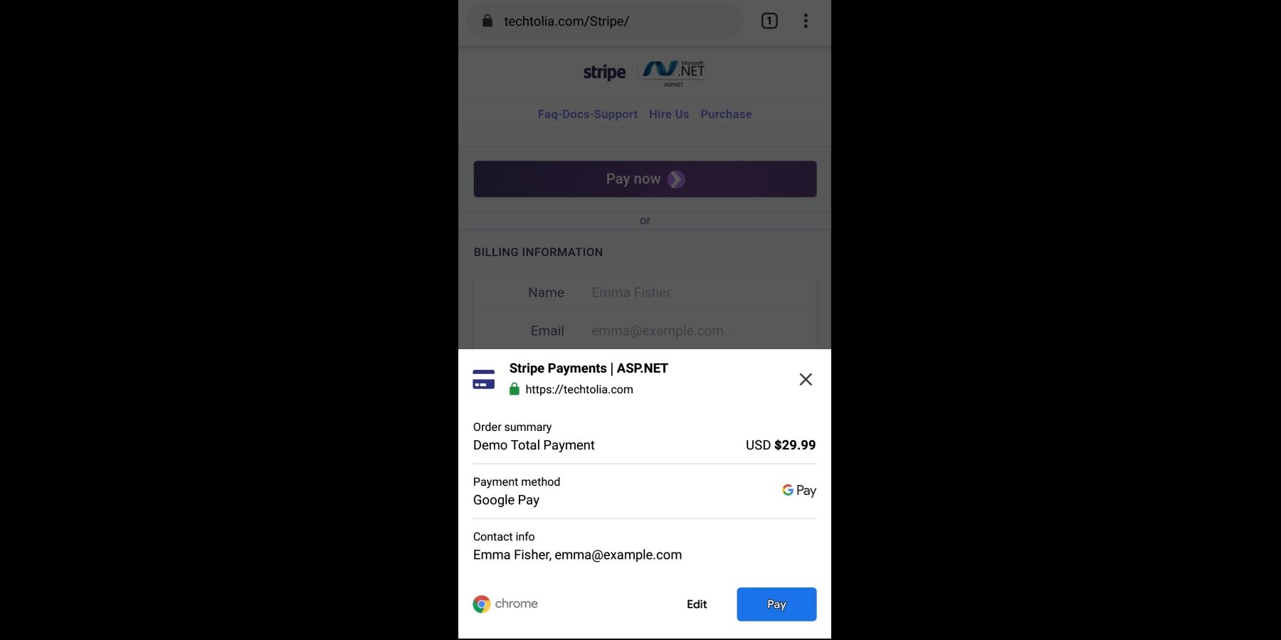 Collect payment and address information from customers who use Apple Pay, Google Pay, Microsoft Pay, and the browser Payment Request API (Chrome, Opera, Edge, Safari). To use Apple Pay on Safari, you need to register with Apple all of your web domains that will show an Apple Pay button.