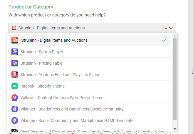 I would be happy to do so, but when I create a ticket, I find that the product I purchased does not appear in the category I chose and therefore I get an error saying “Sorry, that purchase code is for a different Envato product.” Because the product I purchased does not correspond to the category.