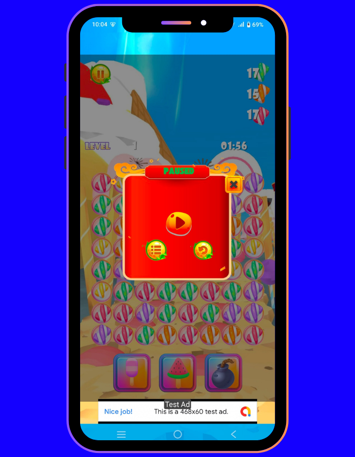 Sugar Rush 100 is a fast-paced, addictive arcade game developed using HTML5, CSS3, and JavaScript, wrapped natively for Android using Android Studio with Java. It comes fully integrated with AdMob and AppLovin MAX Mediation, including premium ad networks like Facebook Audience Network, Unity Ads, and AdColony for maximum revenue generation.