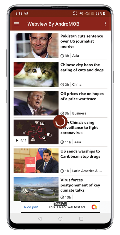 WebView App is a native Android application which uses web view component for displaying content. With this template you can turn your responsive website into a universal mobile app. It is quick, easy and affordable. WebView App has many useful built-in features and services. It is the most popular web view app on Envato Market.