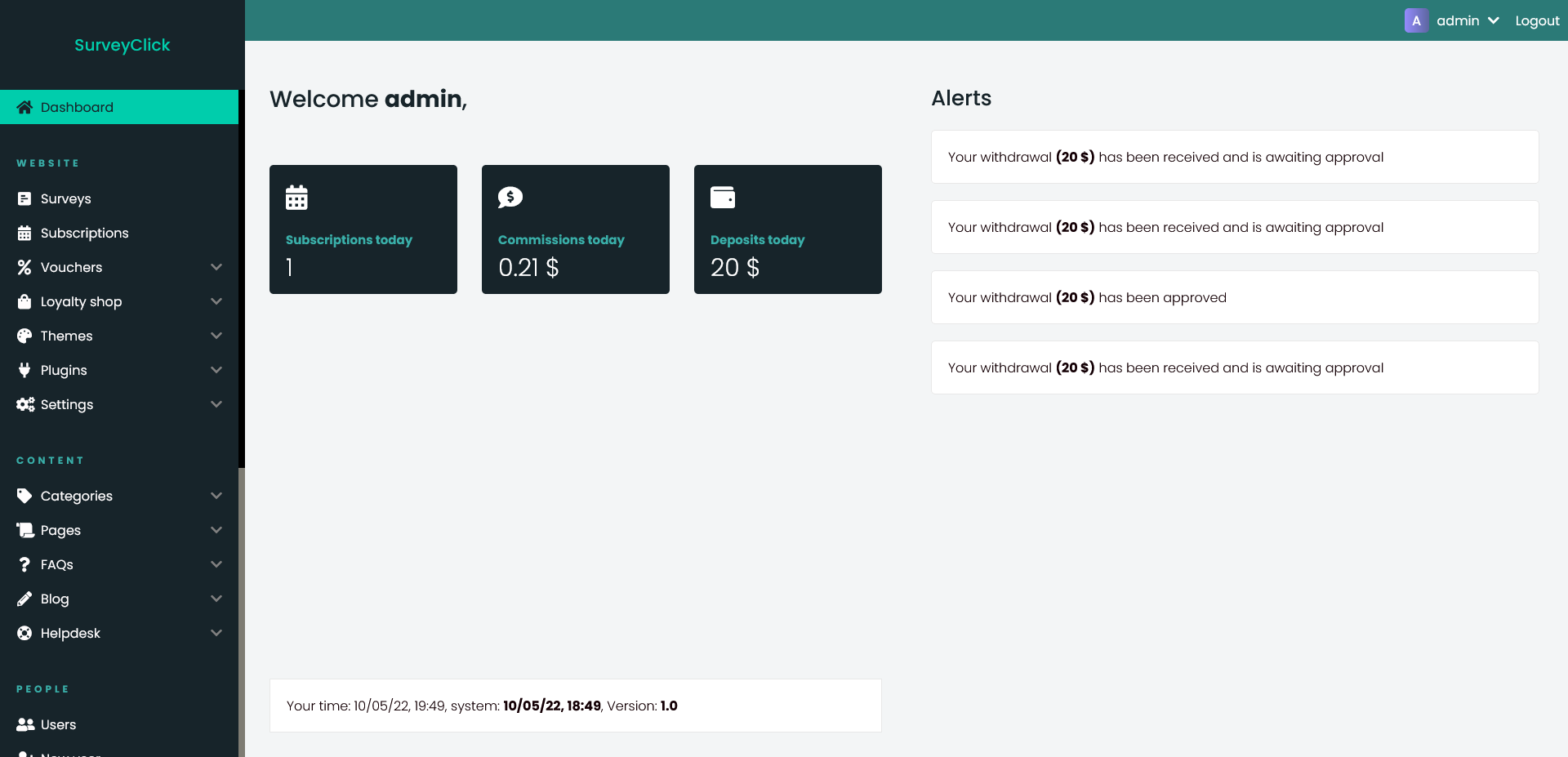 SurveyClick is a PHP survey builder script. The multitude of options allows you to create the most complex surveys. Using the filters you can create reports you need, compare and share.