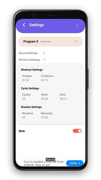 Very intuitive interface. After installing this HIIT timer, you only need to press one button to start a Tabata workout with classic settings.