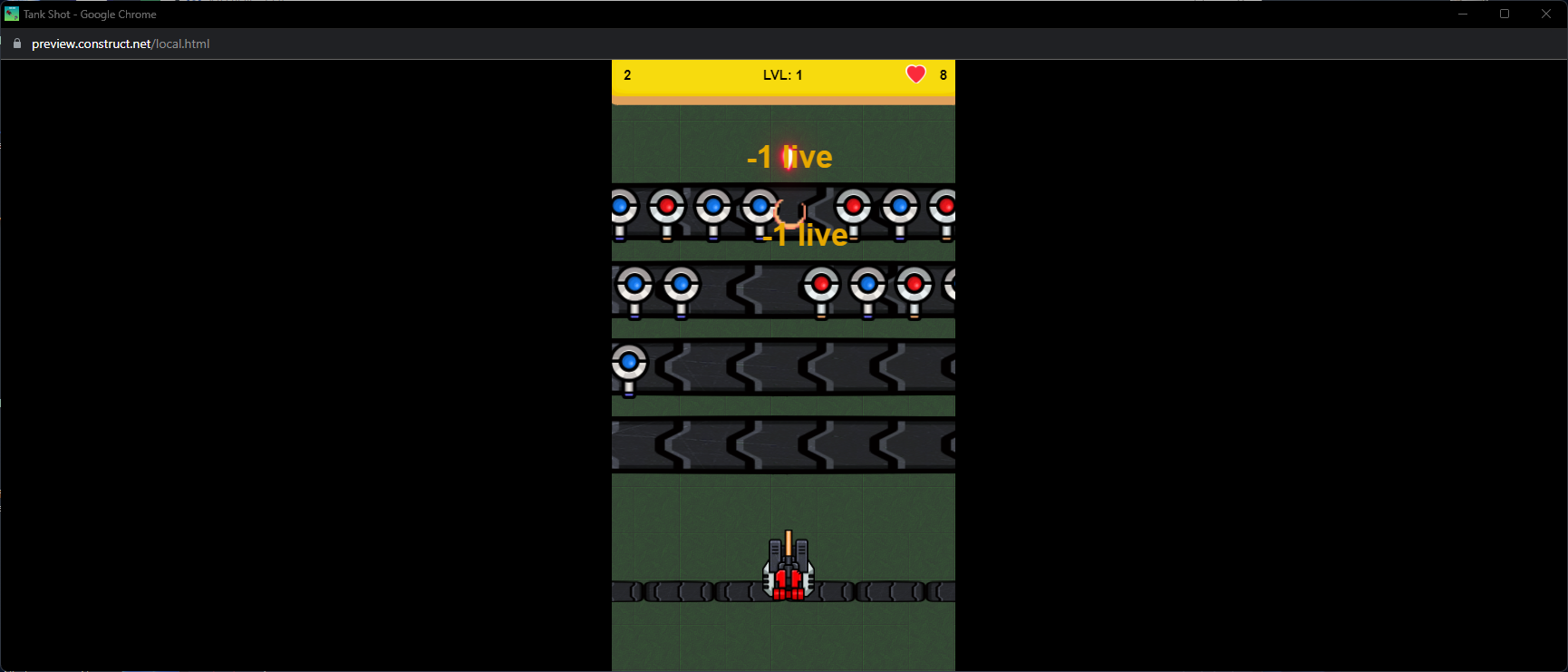 Control the red tank defense shoot the blue droids, don’t shot your team mate (red droid), try to destroy all the blue before they reach the end line.