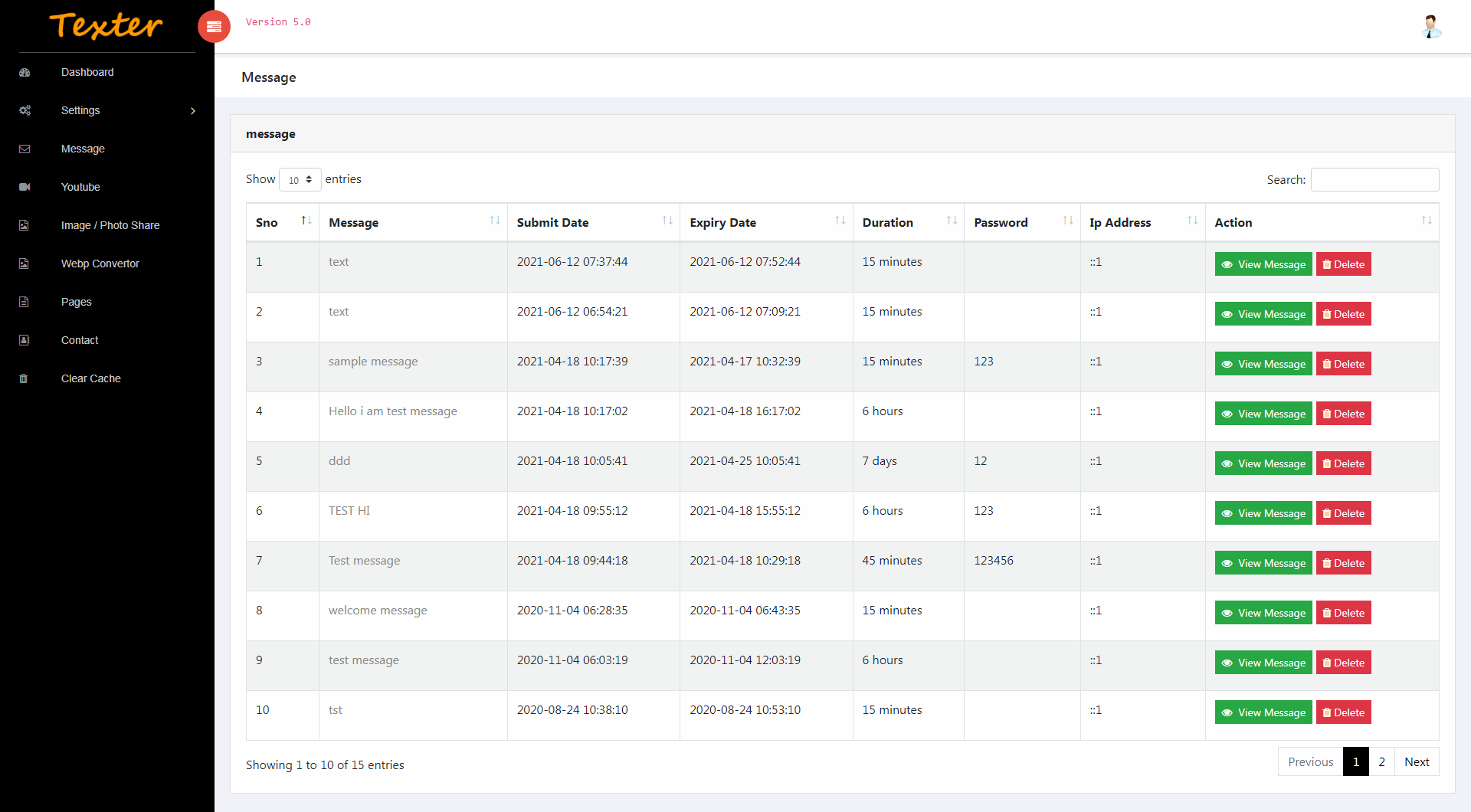 Texter is a temporary message, youtube video search, webp convertor and photo sharing system. Every Message set password / without password to submitted on visitors. Message are generated unique URL so visitors send it to whoever you want. Destroyed duration set on every messages. Script Developed with PHP Laravel & Mysql. There are many powerful features for dynamic pages, contact us, google ads, google recaptcha, google translate, youtube video search and image/photo sharing, jpg / png To webp convertor…ect we provide to help of details documentation it will take few minutes to quick installation.