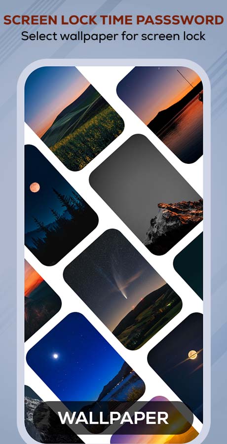 ⏱ Set current time as password One feature that makes this screen lock app special is the time lock feature. Set time passcode with current time: day, hour, minute… Now you don’t need to remember your phone password anymore. And you are not afraid that someone knows the passcode to unlock the phone. Let set the timelock screen for your phone. You can adjust the format of the clock displayed on the time lock screen. There are many styles to choose from, and they are eye-catching. Default lock is boring, do you want to change it with bubble or star keyboard, even cute neon style? The phone suddenly became more special, more unique. If you like drawing to unlock, choose pattern lock screen. Huge library with nearly 100 keyboard styles from fruit, soccer, christmas, flowers. There are even cute emojis to choose from. Which style do you prefer? The wallpaper store has up to 500 high-quality photos for you to freely choose as your lock screen. Photo for phone lock screen is very diverse: nature, pet, girl, flower wallpaper. Forget the default monochrome phone lock screen, you have the most special phone lock screen wallpaper app!