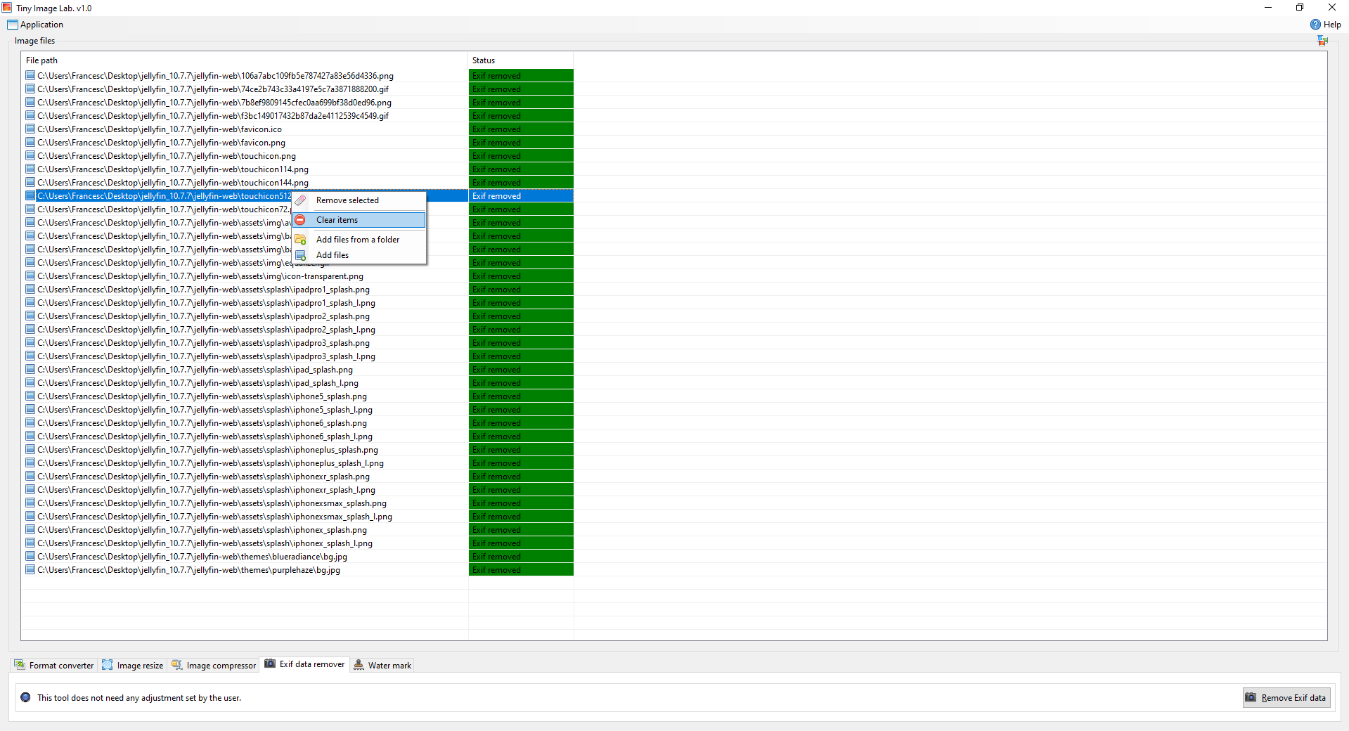 Tiny Image Lab. is a little portable tool to change the format, compress, watermark, resize and remove exif data from your photos and images.