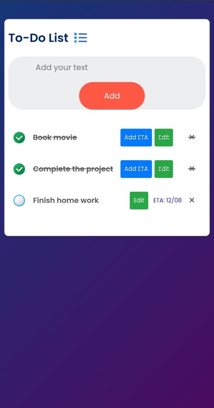 Stay organized and boost your productivity with the Smart To-Do List App – a clean, modern, and easy-to-use task management solution. Whether it’s finishing homework, booking flight tickets, or planning a trip, this app helps you stay on track with an intuitive interface and powerful features.