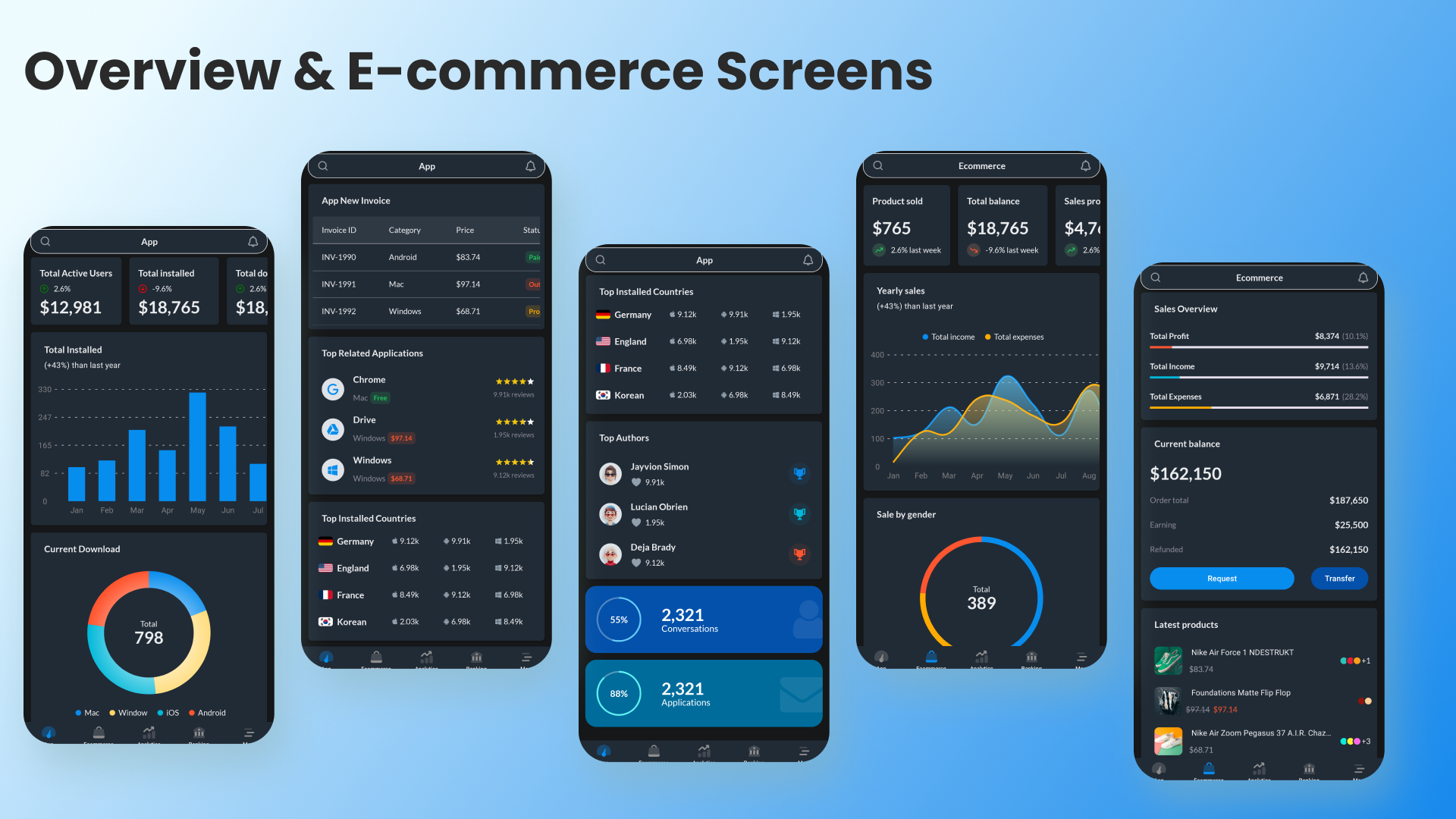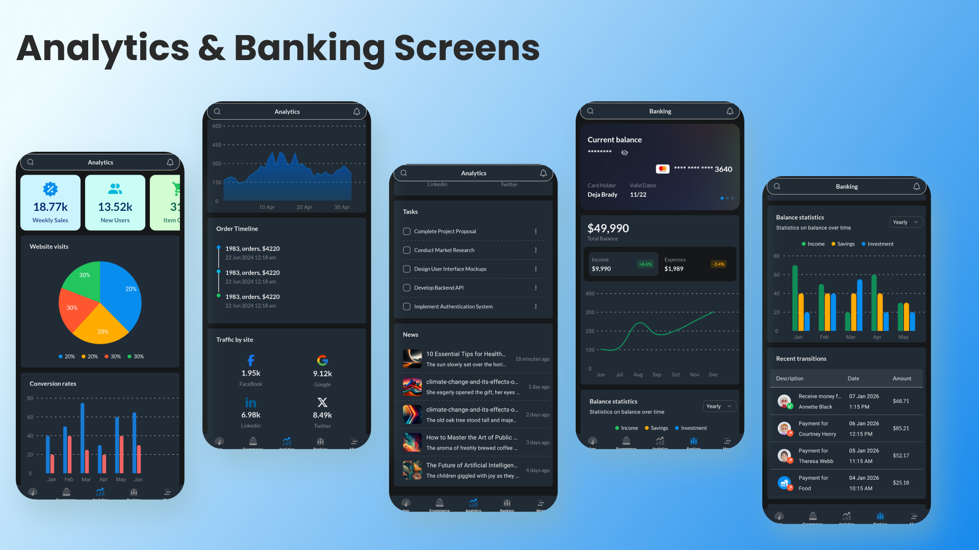 - Analytics & charts screens
