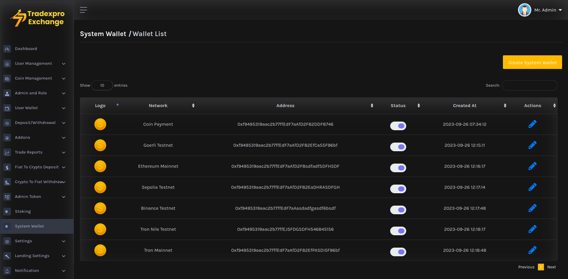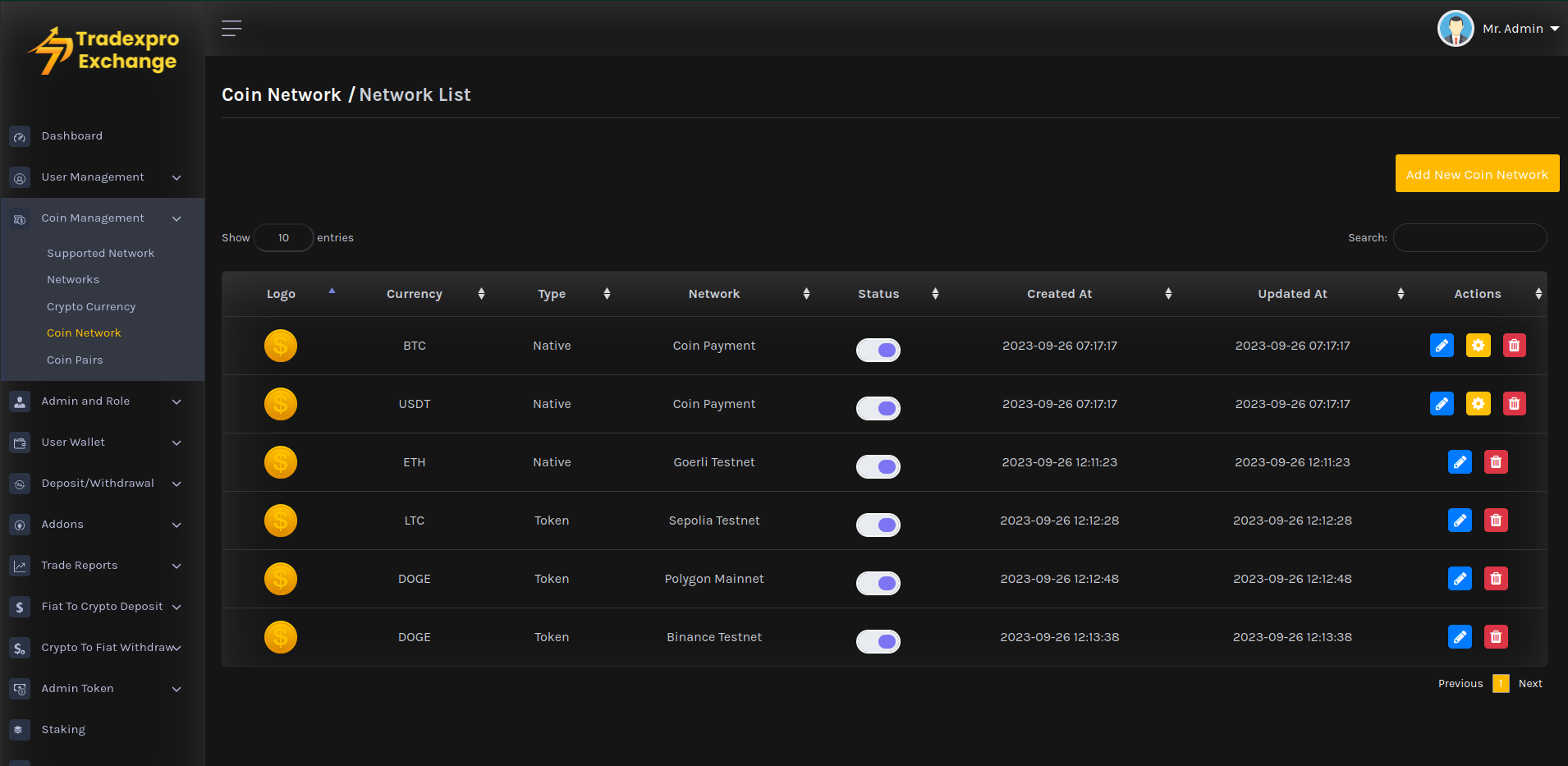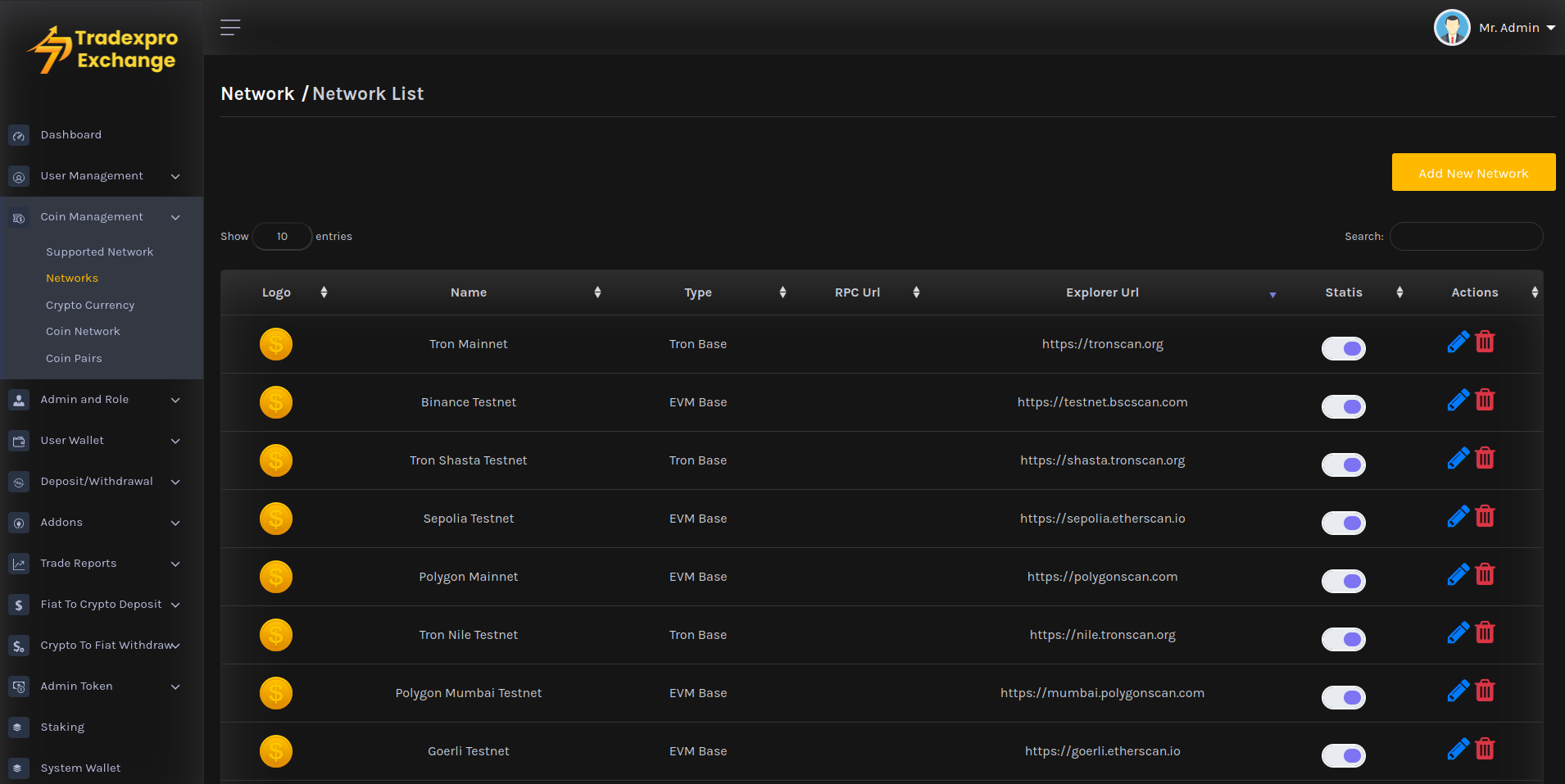 With this EVM Network Supported Addon, Tradexpro Exchange will support all EVM-based Networks. Ethereum Blockchain with Native and ERC20 tokens will be supported. BNB Smart Chain (BSC) Blockchain with Native and BEP20 tokens will be supported. TRON Blockchain with native and TRC20 tokens will be supported. Polygon (MATIC) Blockchain with native and Polygon tokens will be supported. So, you won’t have to rely on Coin Payment or BitGo for EVM-based native coins and tokens. No third-party API is needed for EVM-based coins and tokens.