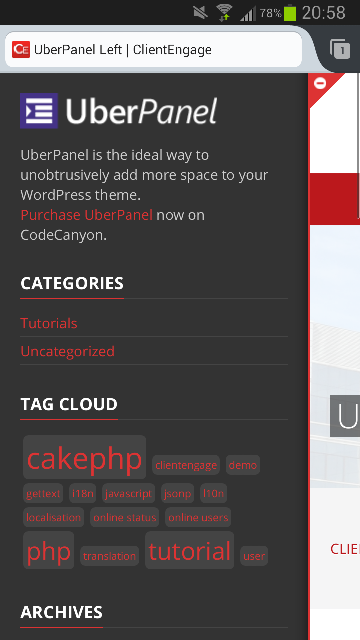 UberPanel is a plugin which adds a widgetised sliding panel to any WordPress theme. It provides you with an unobtrusive way to add additional space to your theme.