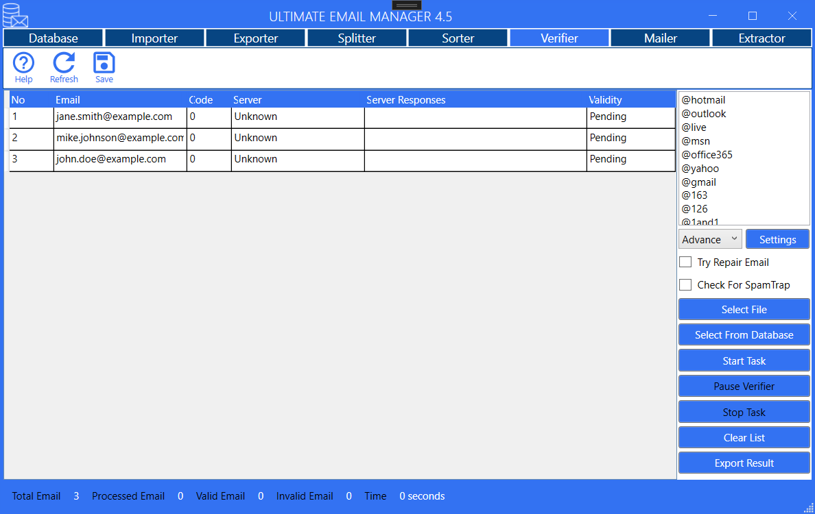 database-page.png exporter-page.png extractor-account-page.png extractor-file-page.png extractor-website-page.png importer-page-no-file.png importer-page.png license-page.png mailer-page.png smtp-setting-page.png sorter-page.png splitter-page.png verifier-in-advance-page.png verifier-page.png verifier-setting-page.png