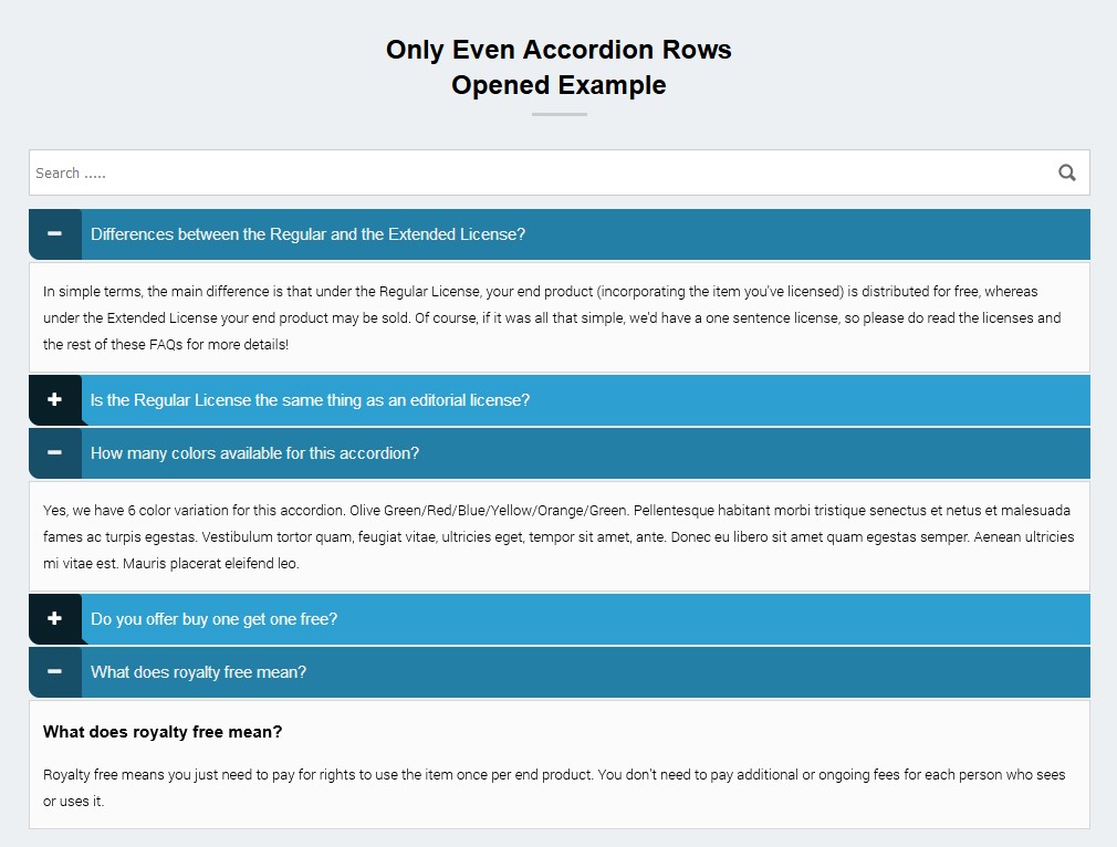 Ultimate Searchable Accordion is the most powerful and advanced content searchable accordion Addon for the WPBakery Page Builder, which comes with six stylish responsive themes and 15 animations. It& is bootstrap compatible and fits any screen size. This add-on provides a great option to create responsive and animated FAQ accordions for your website.