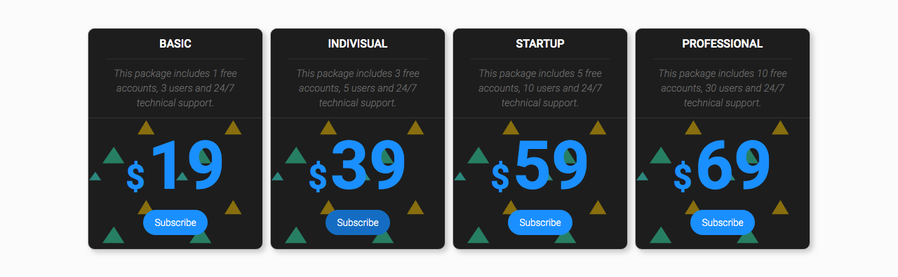 Unik CSS Pricing List / Pricing Table is a collection of 100+ CSS pricing lists. The package is fully device responsive and the layouts are designed based on the latest design trends. Beside CSS files the SCSS files are also available and you can edit the files, easier and faster.