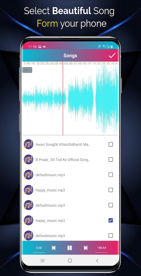 5. Add music to the slideshow, easily select the music you love to add to the video.