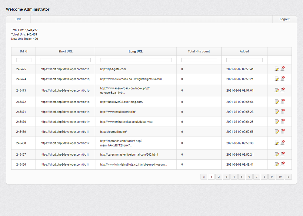 - Excluded possibility to generate short URLs from the same host. i.e. you can’t short “mydomain.com/xxx” URL if you installed script in “mydomain.com”