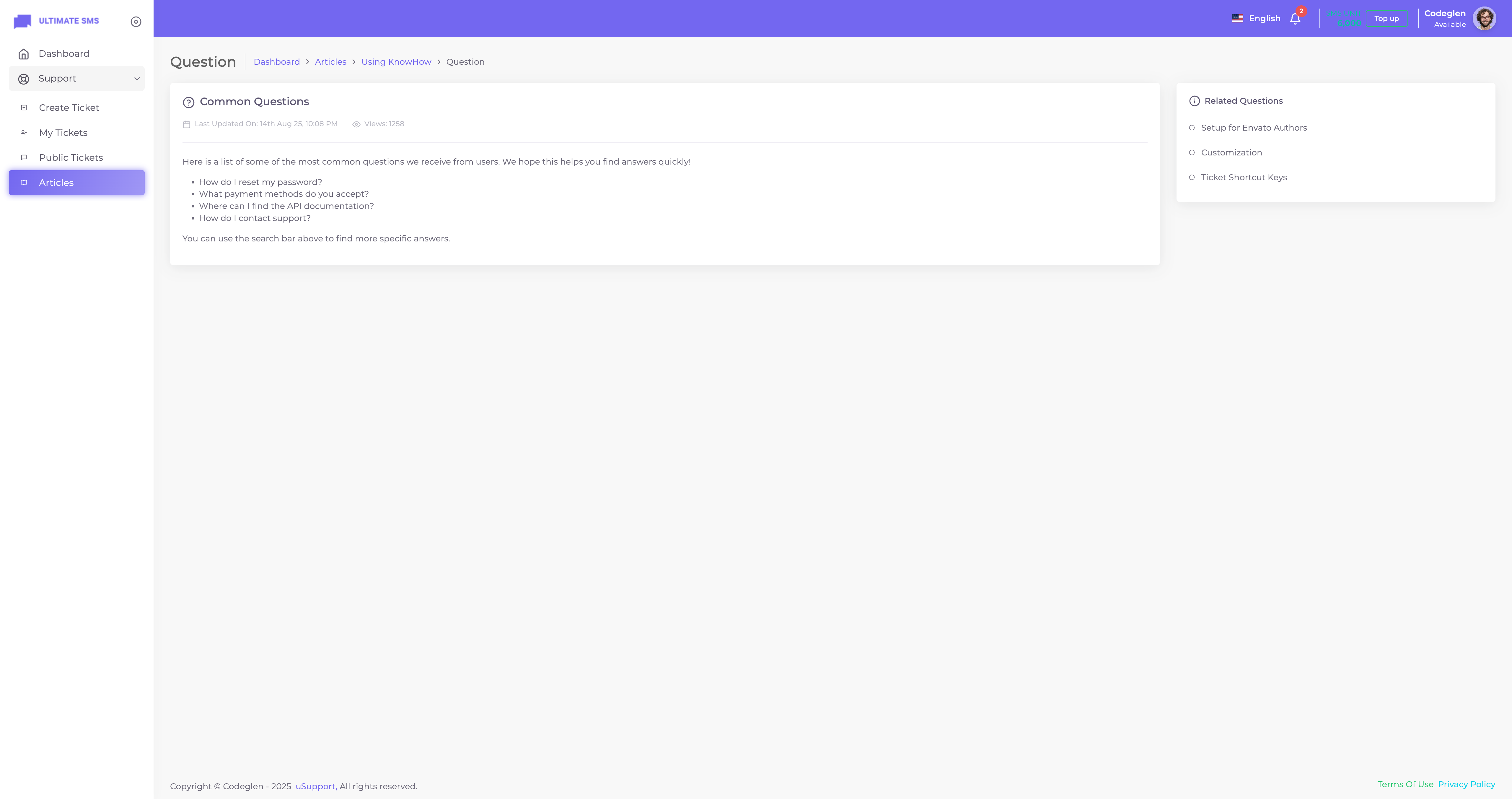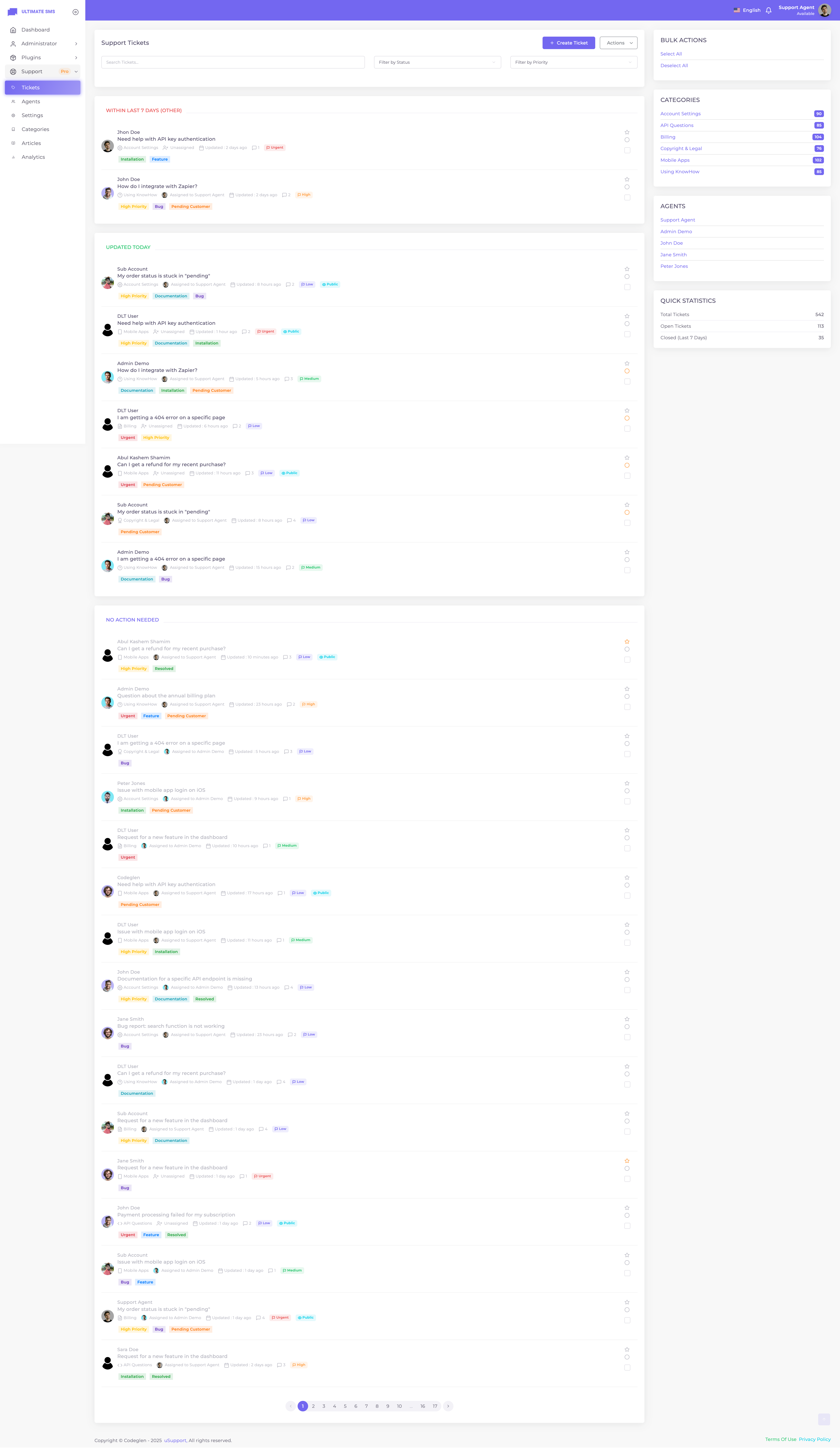 Empower your customer support team with uSupport – the ultimate support ticket plugin for Ultimate SMS that redefines how you handle customer inquiries. Designed with simplicity and power in mind, uSupport gives you everything you need to track, categorize, and resolve tickets with unmatched efficiency. From automated workflows that save valuable time, to real-time analytics that keep you on top of performance, every feature is built to help your team deliver faster, smarter, and more reliable support. With a built-in knowledge base, customers can quickly find answers themselves, reducing ticket volume and boosting satisfaction. Whether you’re managing a small support desk or a growing enterprise, uSupport scales effortlessly to meet your needs, ensuring a smooth, professional, and personalized support experience every step of the way.