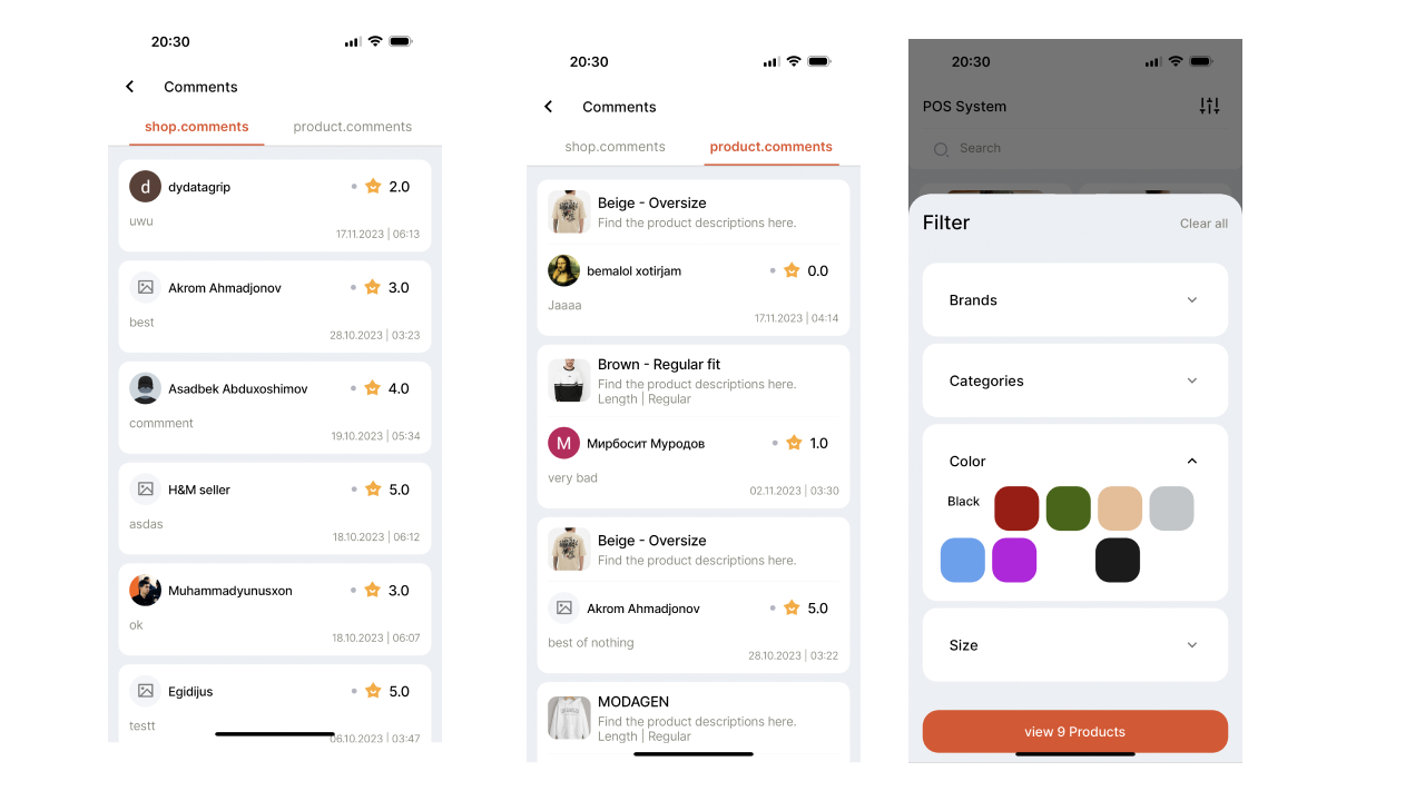 - Filter products/shops/category/brands