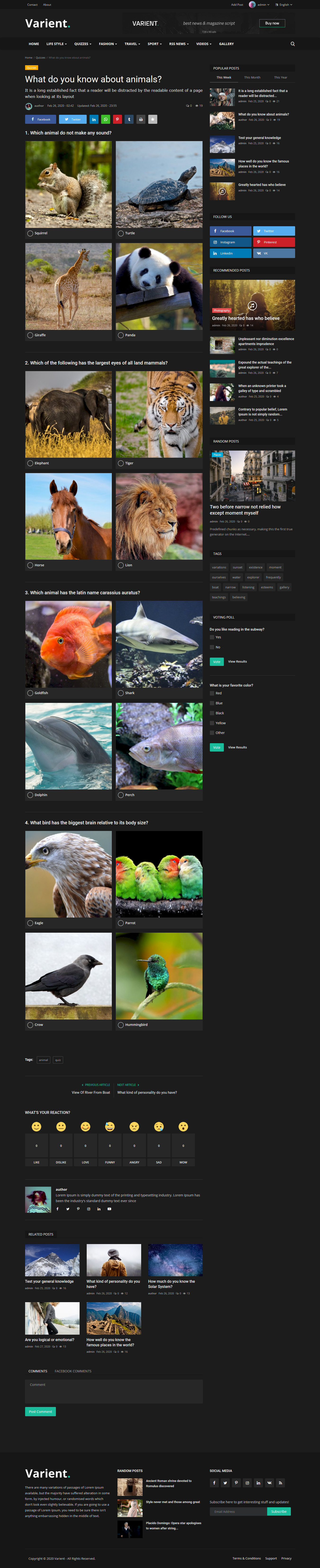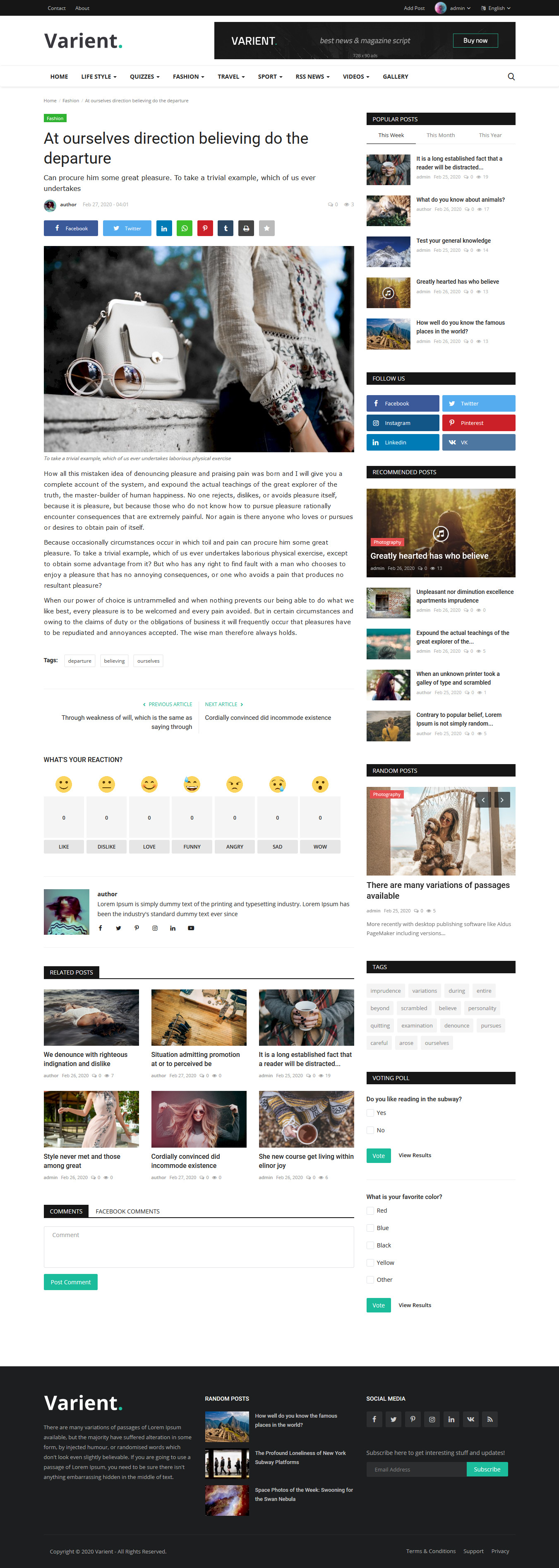 Varient is a versatile and powerful multi-purpose news & magazine script designed for modern publishers. With its clean, responsive, and user-friendly interface, it ensures an optimal experience across all devices. The script comes with a feature-rich Admin panel, allowing you to effortlessly manage every aspect of your website.
