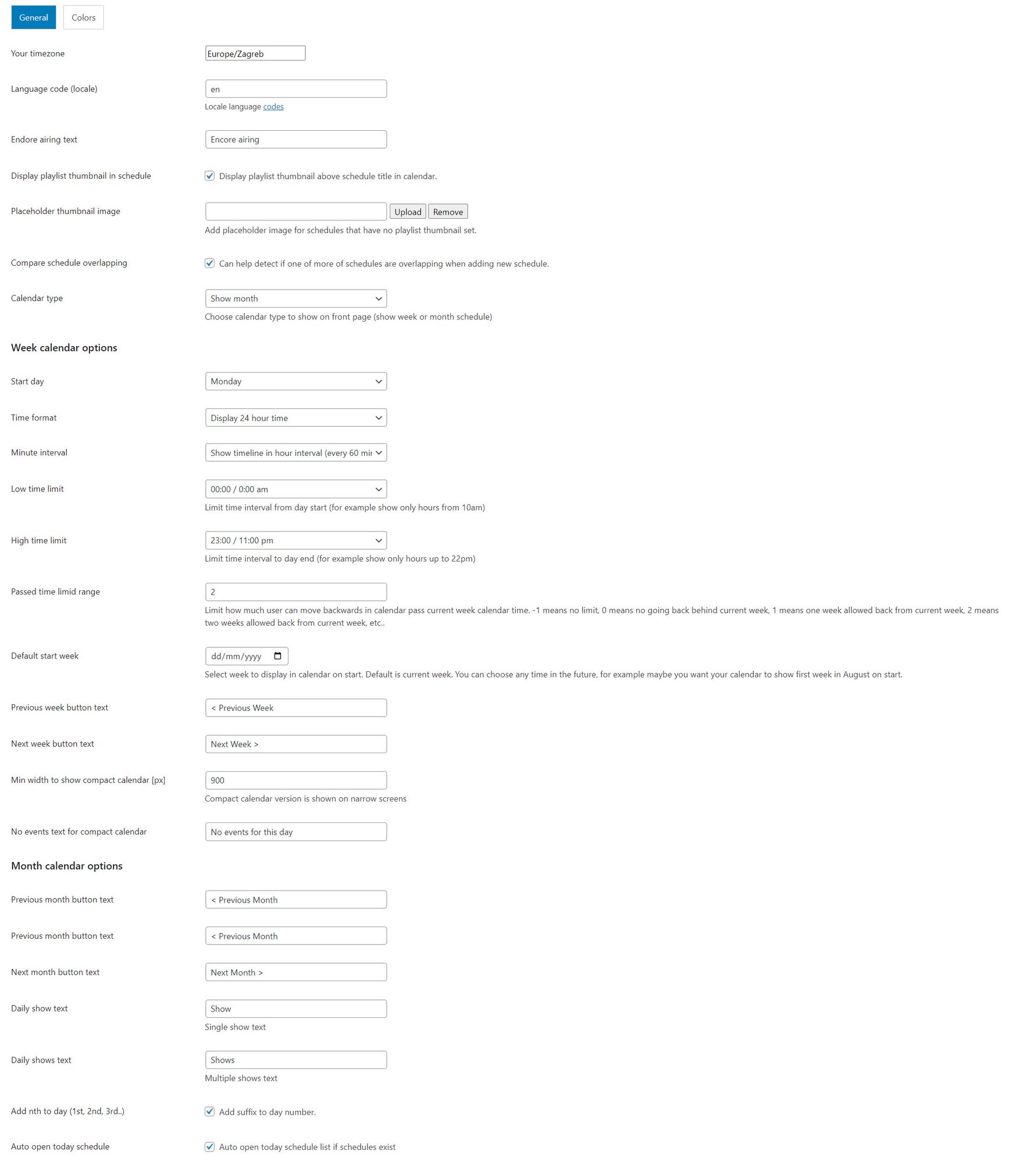 - Display week or month schedule calendar on frontpage with shortcode (optional)