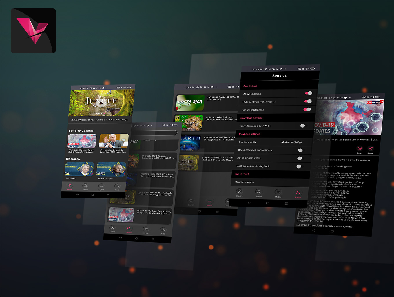 VideoBrek Xamrin Mobile Application is a Multi-purpose Android & iOS streaming app for you to launch your own media streaming platform in minutes. This app allows you to stream multiple video formats including Youtube, Vimeo, Dailymotion, mp4, mkv, avi plus other video streams. Deploying this app can save you hours of coding time.