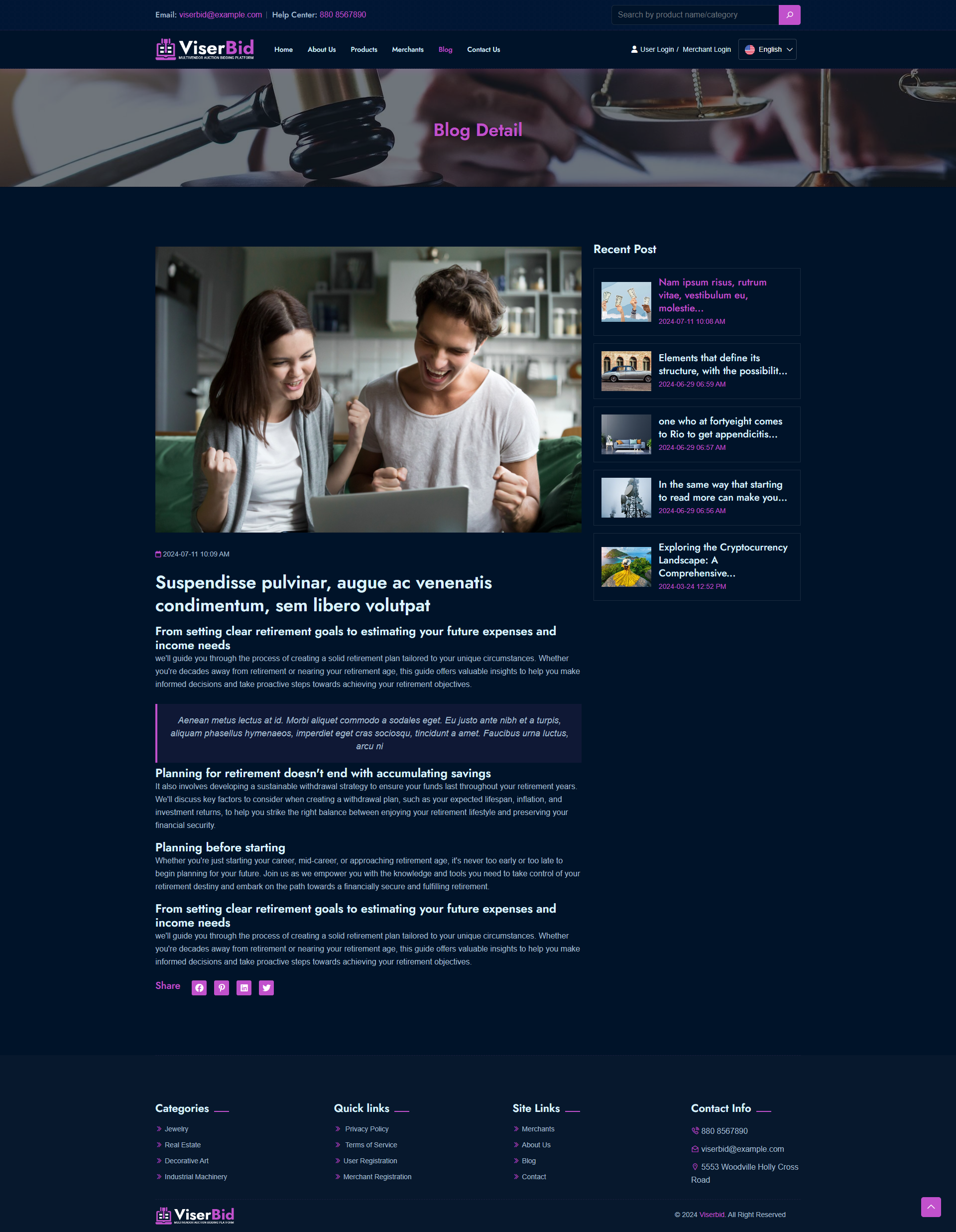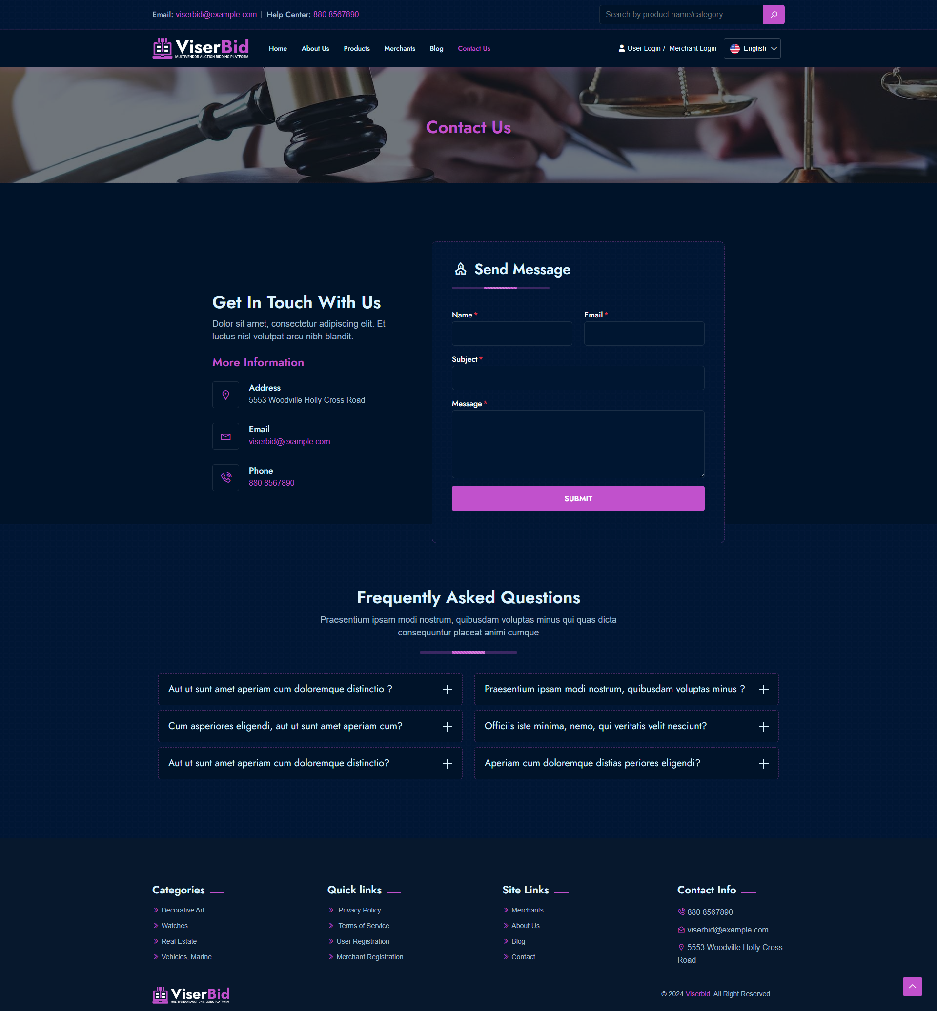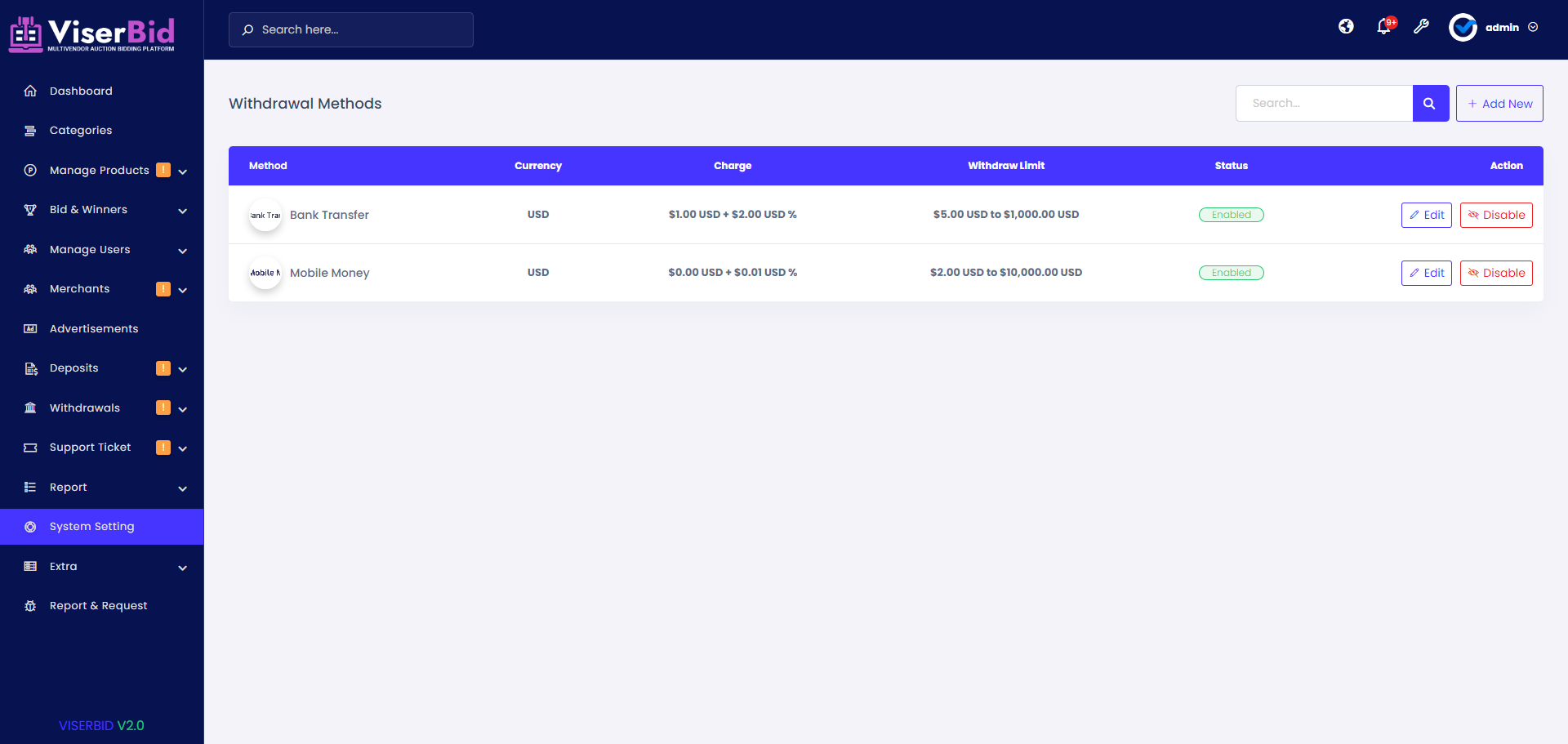 ViserBid is a complete solution for a Multivendor Bid and Win (Auction) website. ViserBid is an online-based platform that helps merchants and businesses from across the globe to sell their items by setting up an auction. A Marketplace auction platform is exactly what it sounds like: auctioneers list their catalogs in an online auction Marketplace right alongside their competitors. Common Marketplace auction platforms include Invaluable, the-Saleroom, EasyLive Auctions, and Live Auctioneers. operations here on ViserBid is very simple, the Merchants can set unlimited auctions from the Merchant panel, users are able to register for free and they are able to BID any item by any amount. when auction time will be finished, the top BIDDER will win the product or service. ViserBid is endlessly appealing, feature-loaded, customized, and possesses the remarkable capability of running on all devices and operating systems. This script comes with various automated online payment gateways to make the payment more easier and flexible.