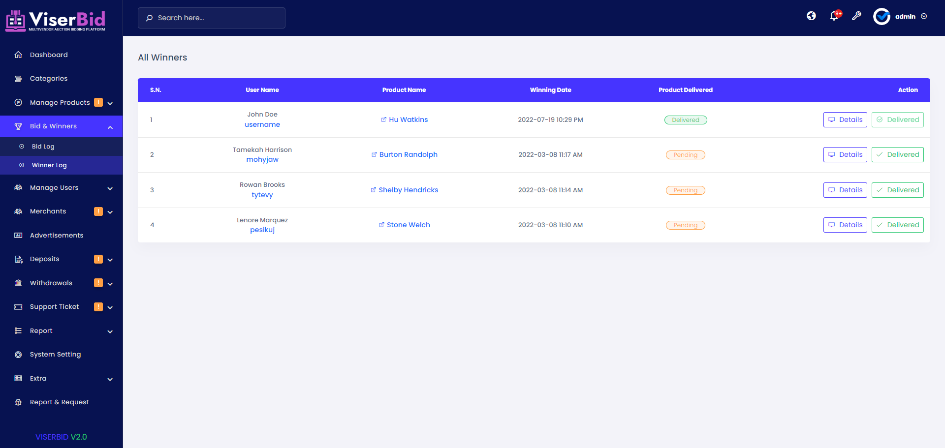 ViserBid is a unique Multivendor Bid and Win platform. You can make real-time transactions whenever and wherever you like. The platform can be accessed not only from a PC but also from a full-service mobile. Its easily installable, controllable through the admin panel, comes with a responsive design, high security, interactive User interface. support plugins, LiveChat, Google ReCaptcha, analytics, automatic payment gateway, cards, currencies, and cryptos.
