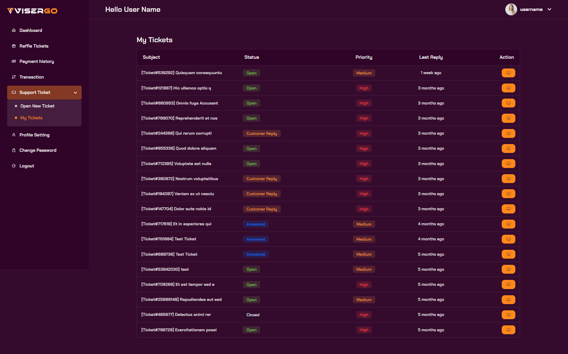 - Manage Support Ticket.